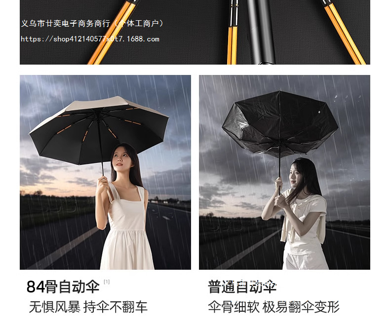 • 전자동 [84 유리 섬유 방풍 우산 갈비뼈 ★ 보강 강화 ★ 비가 오나 눈이 오나 사용 가능】흑요석 검정색.