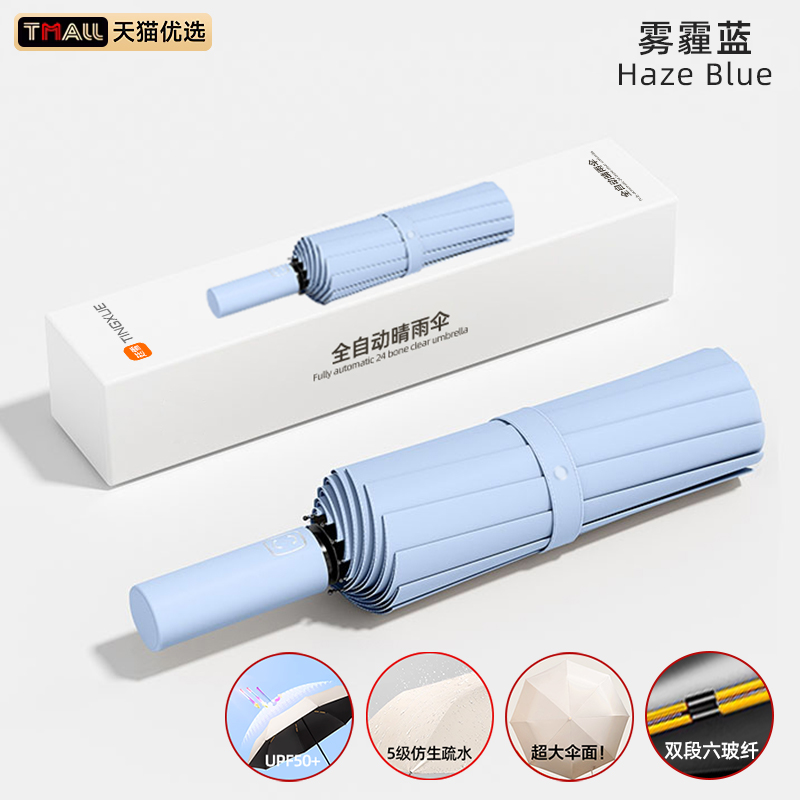 • 전자동 [128 유리 섬유 방풍 우산 갈비뼈 ★ 보강 강화 ★ 비가 오나 눈이 오나 사용 가능】헤이즈 블루