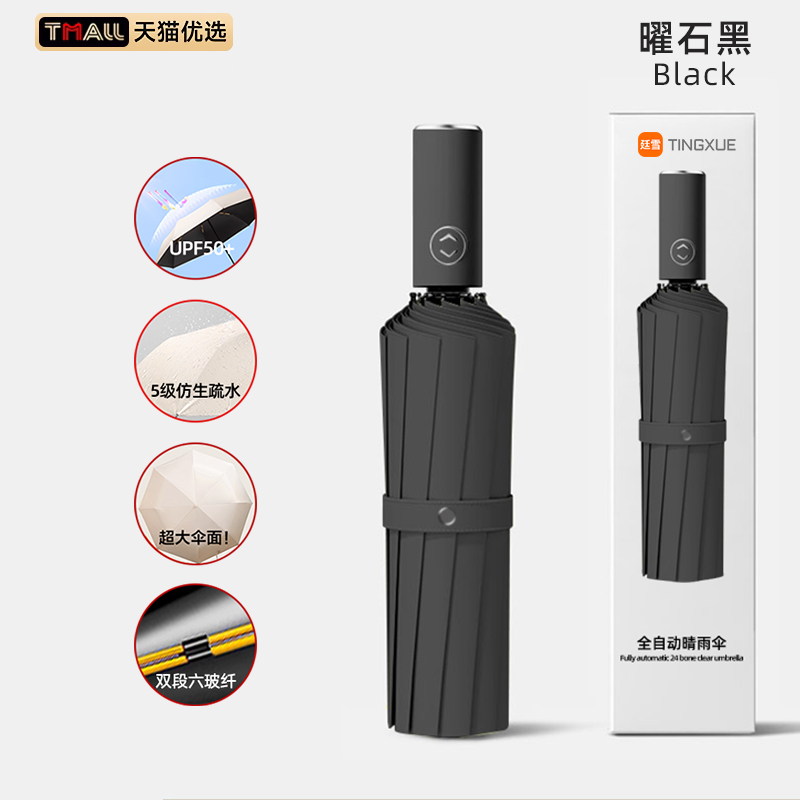 • 전자동 [98 유리 섬유 방풍 우산 갈비뼈 ★ 보강 강화 ★ 비가 오나 눈이 오나 사용 가능】흑요석 검정색.