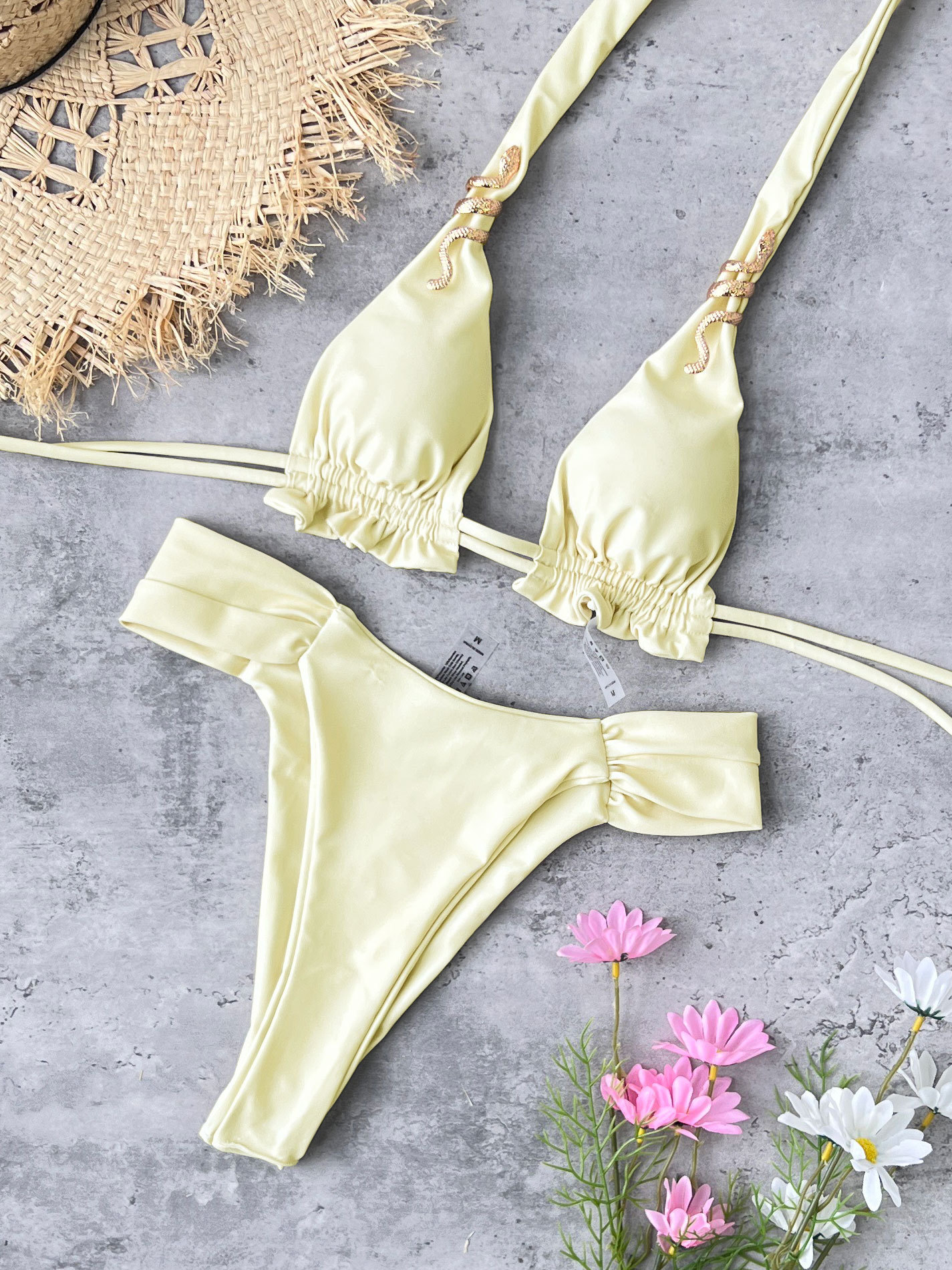 솔리드 컬러 3 포인트 하이 슬릿 스트랩 비키니 유럽과 미국의 섹시한 스플릿 수영복 여성 2025 새로운 비키니스토어 가기