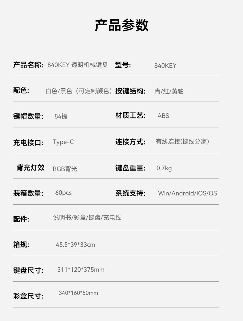 • [흰색] 투명 기계식 키보드 녹색 축 러시아어 버전 백색광 버전(사용자 정의 필요)
