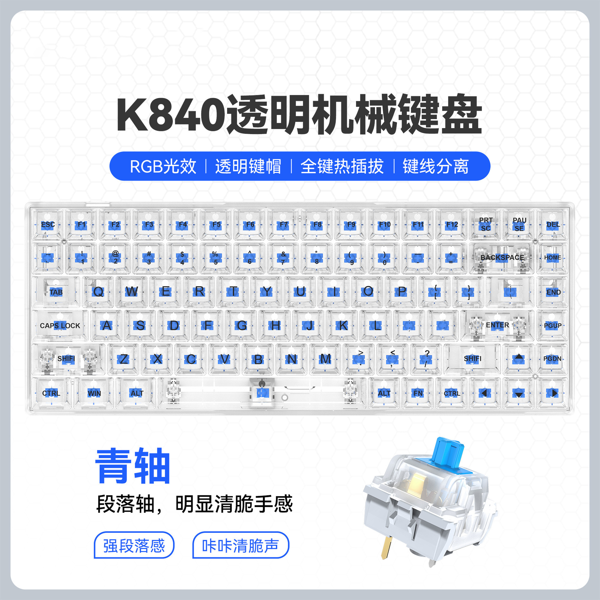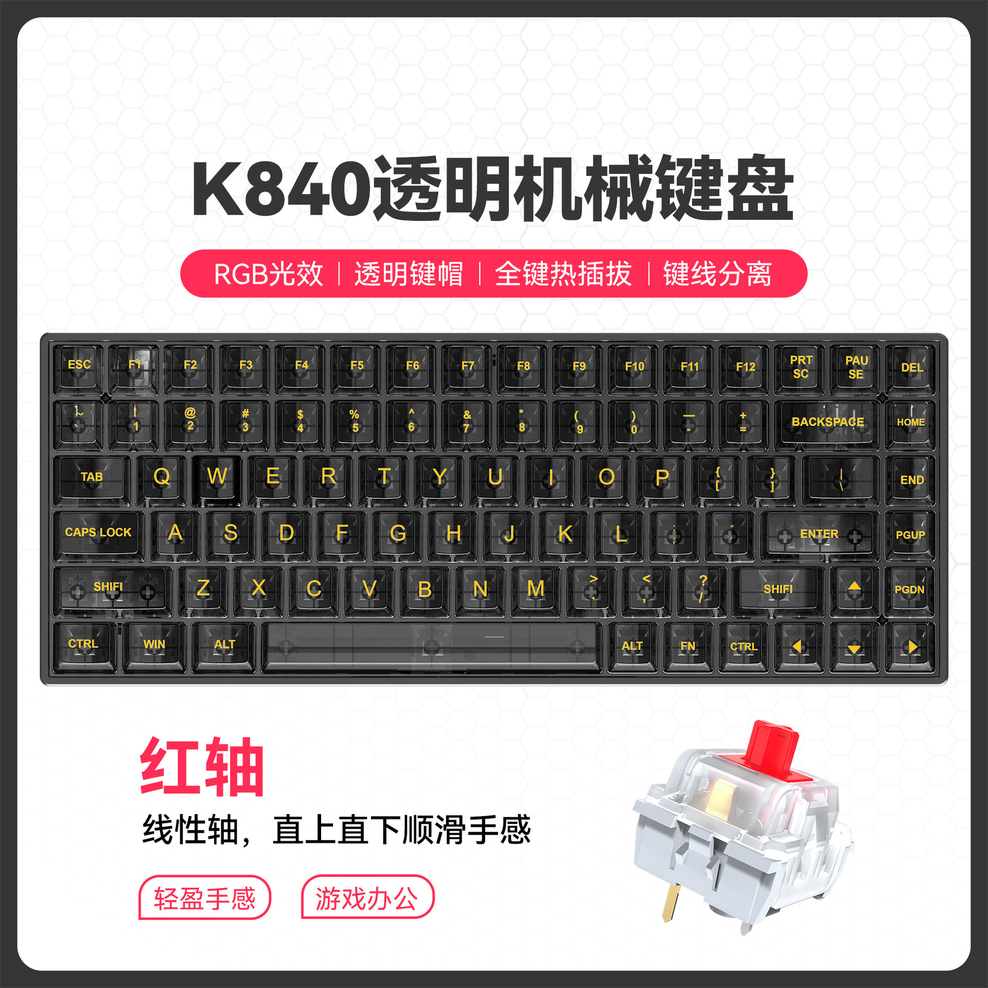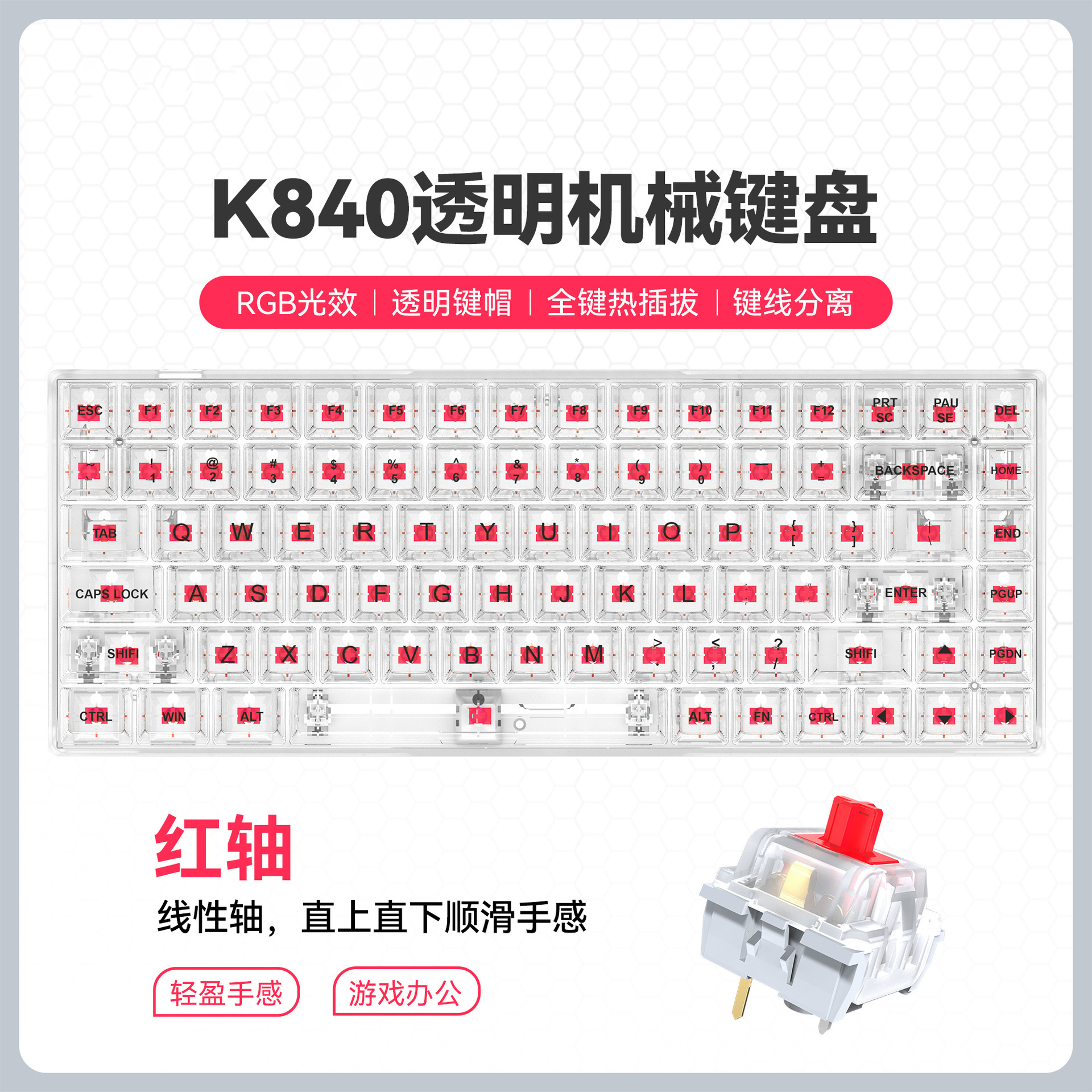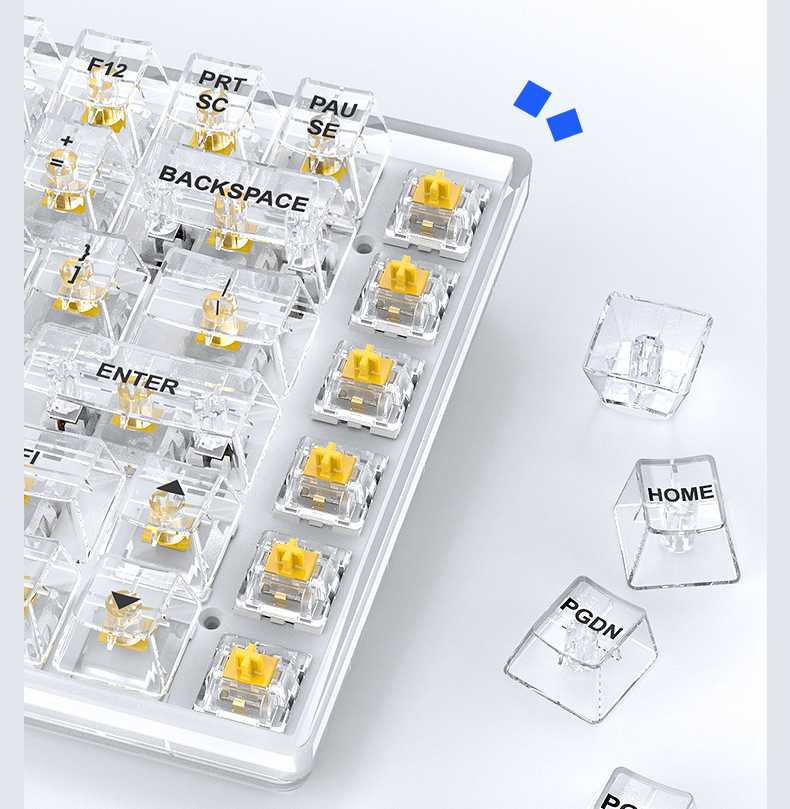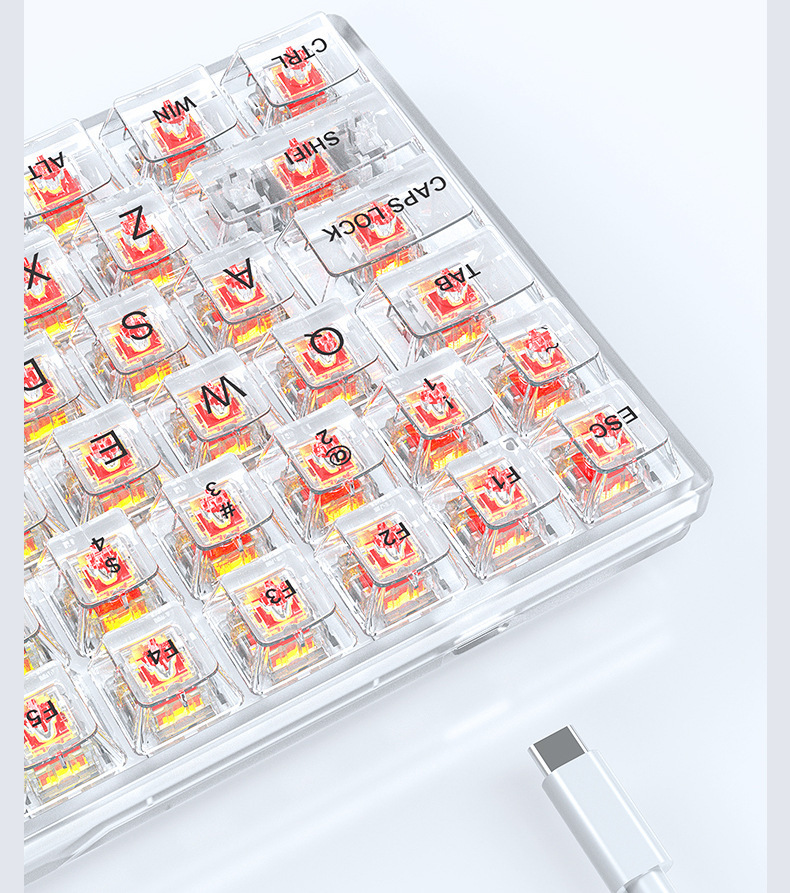 국경 간 신제품 투명 게임용 기계식 키보드 맞춤형 녹색 및 빨간색 축 키 라인 분리형 핫 스왑 가능 기계식 키보드스토어 가기