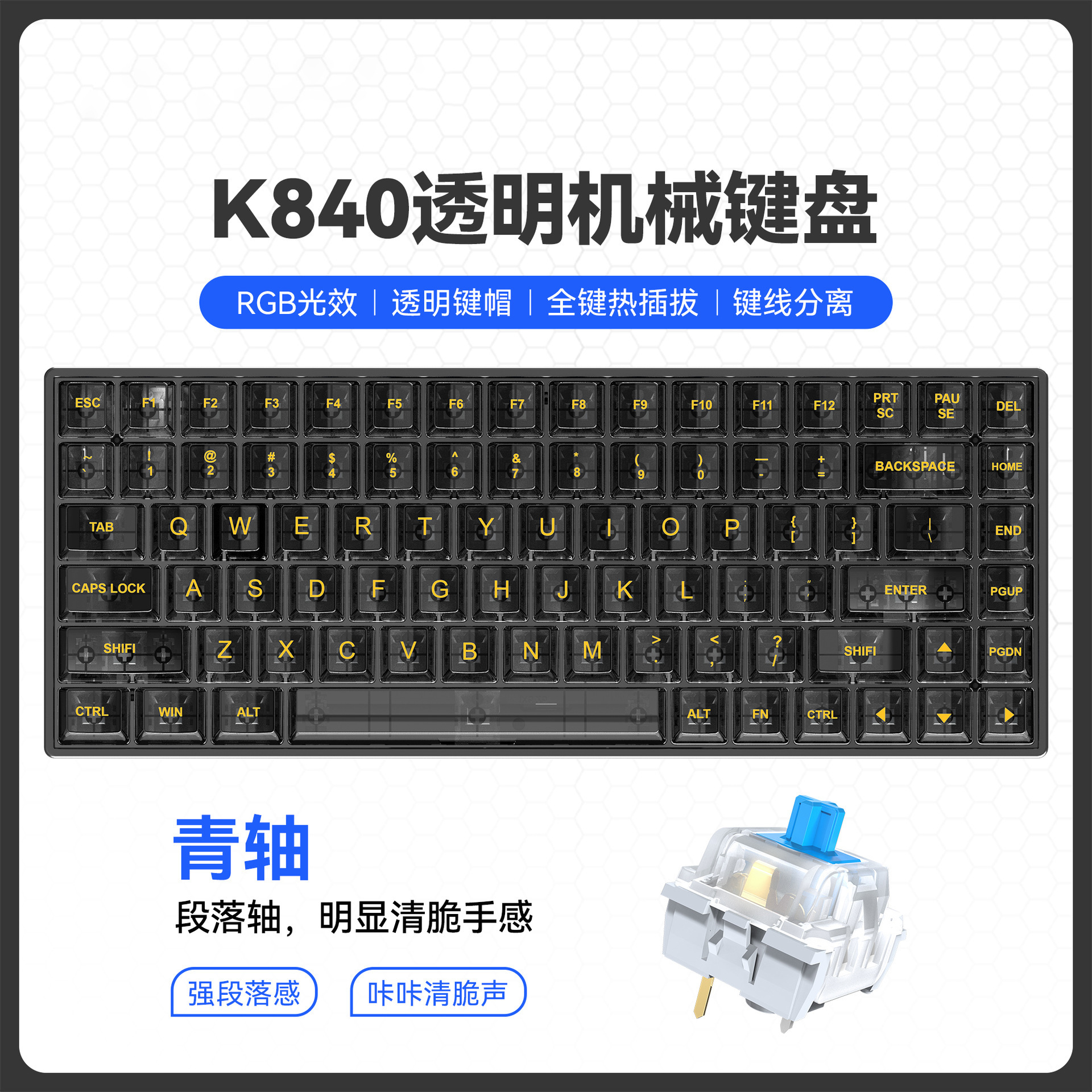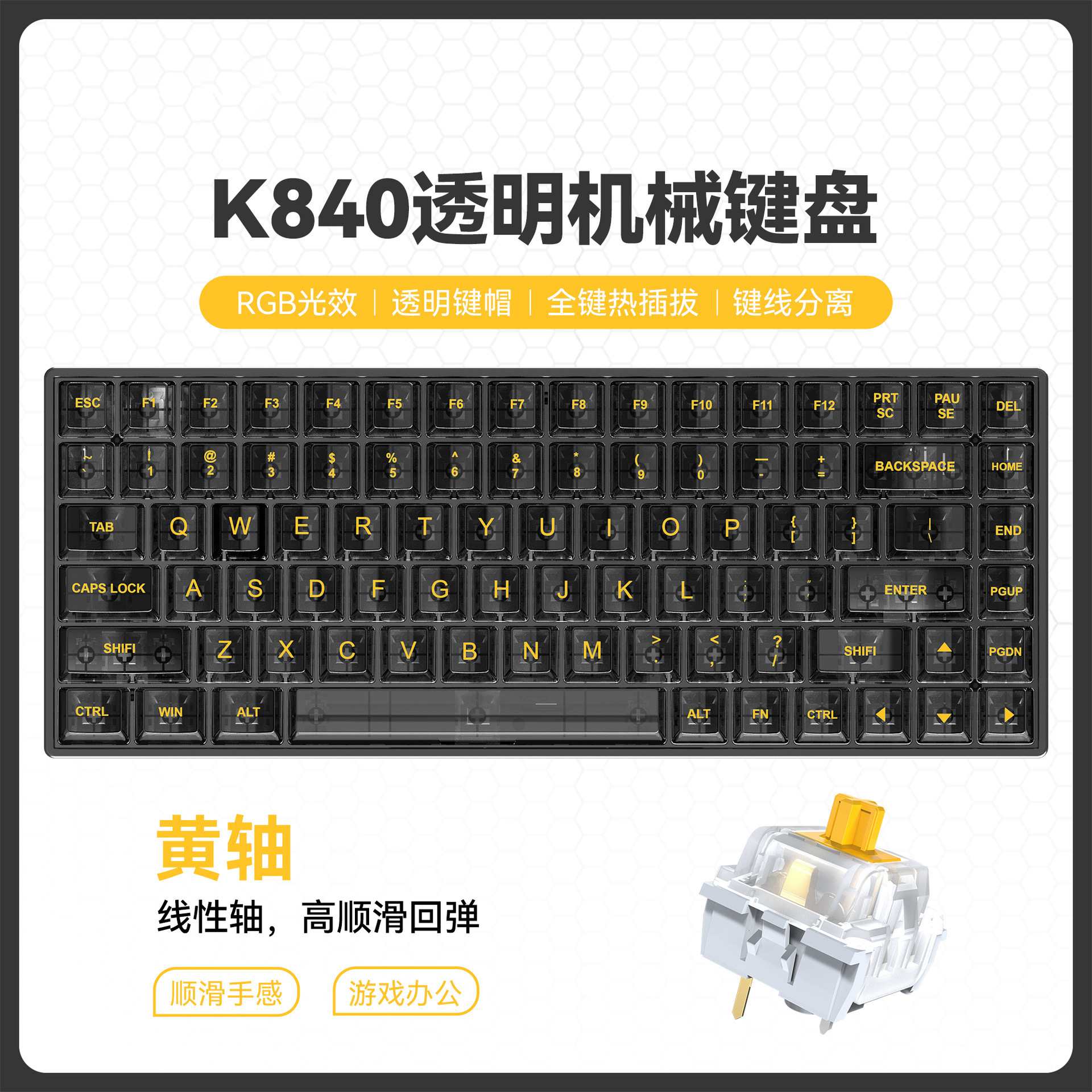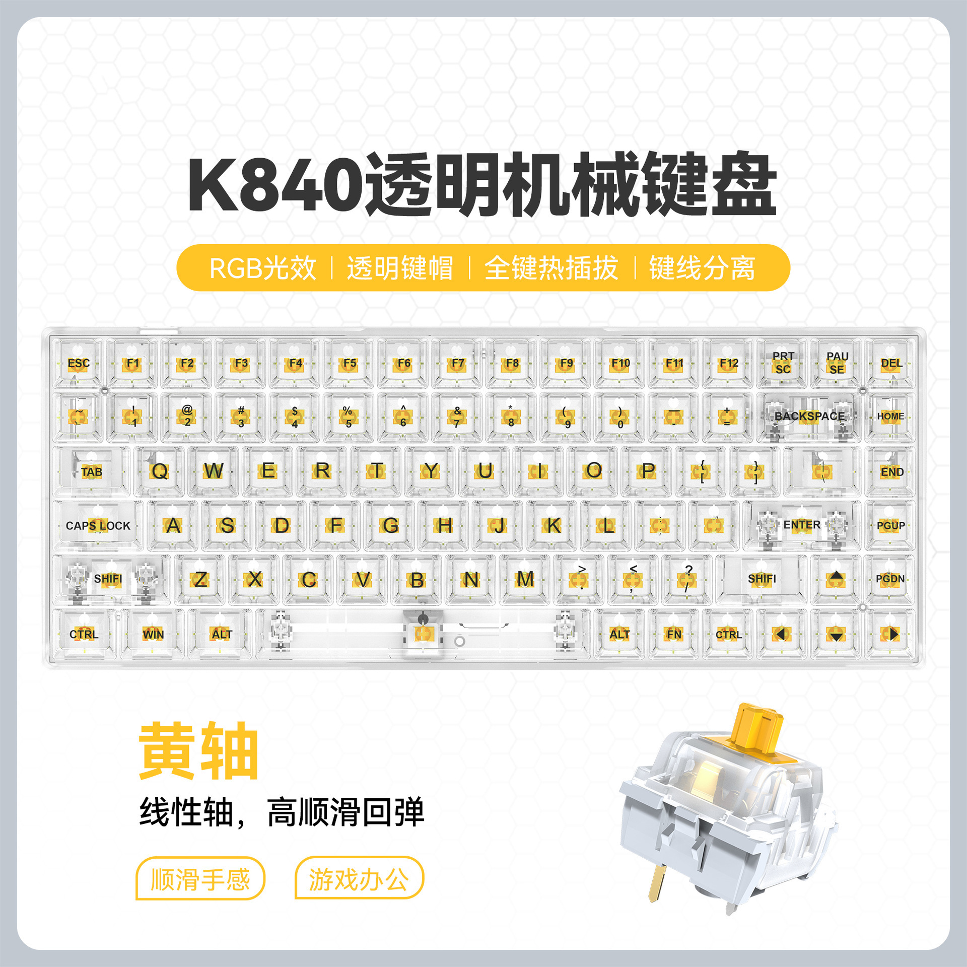• [블랙] 노란색 축 투명 기계식 키보드