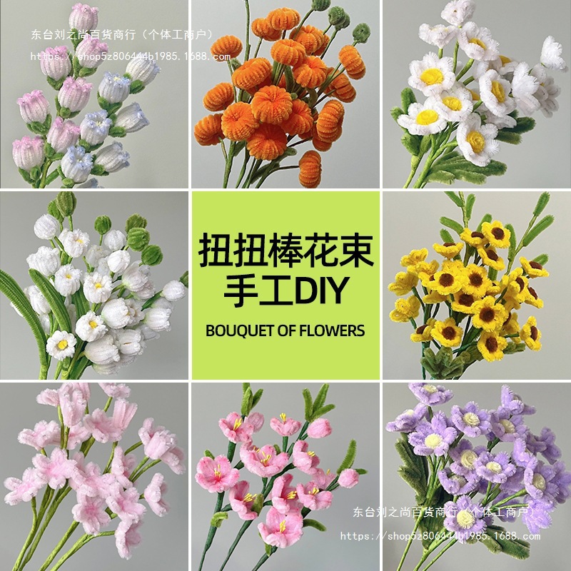 트위스트 스틱 부케, 수제 감, 루이리 소재 패키지, 작은 데이지, 모피 뿌리, 복숭아꽃, 암호화된 감, Niuniu Leideju스토어 가기