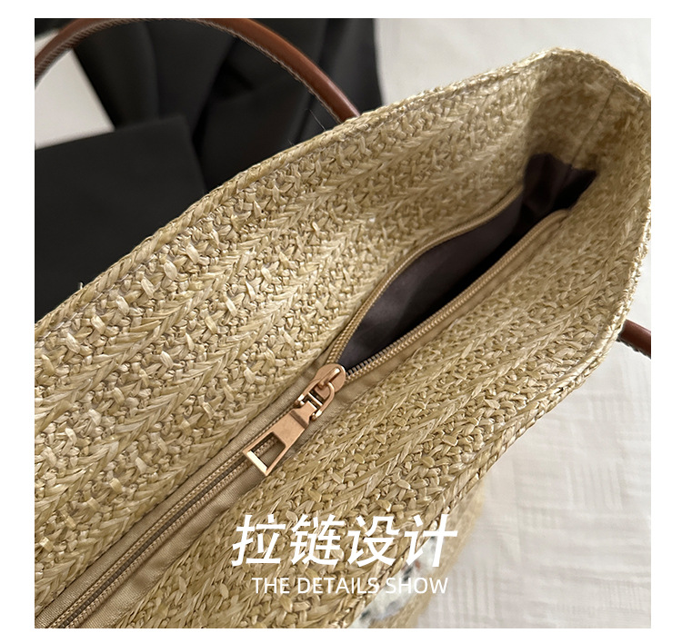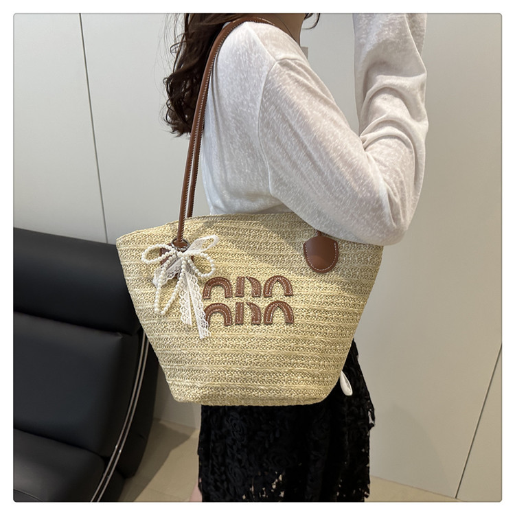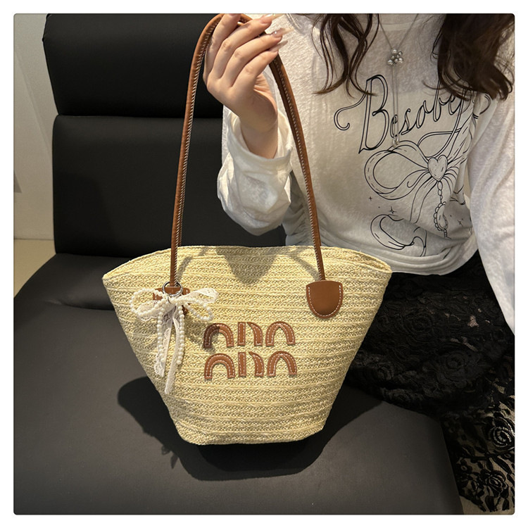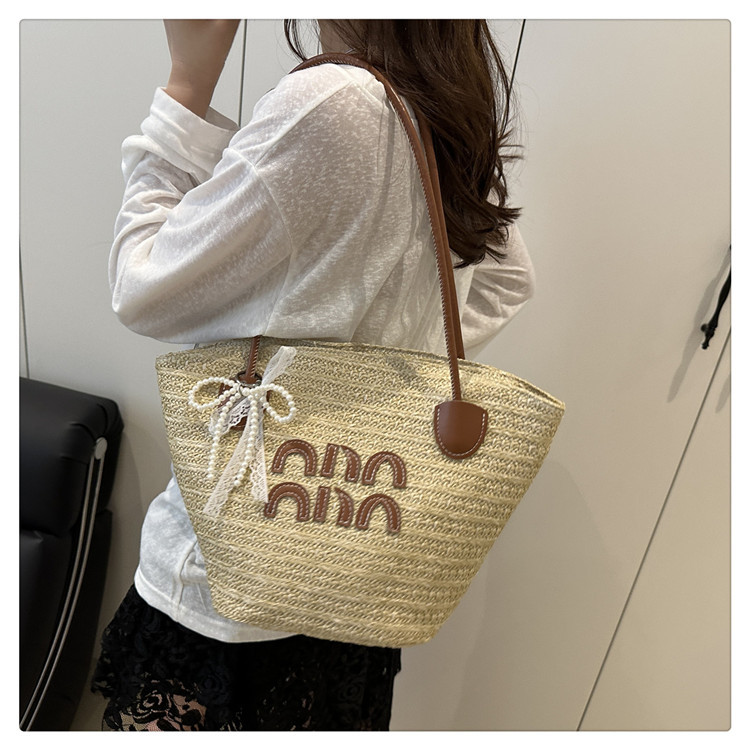 비치 유럽과 미국의 트렌디한 틈새 캐주얼 여성 2025 봄 통근 대용량 밀짚 가방 여성 숄더 토트 백스토어 가기