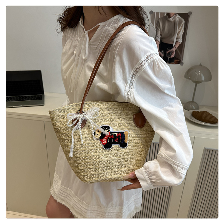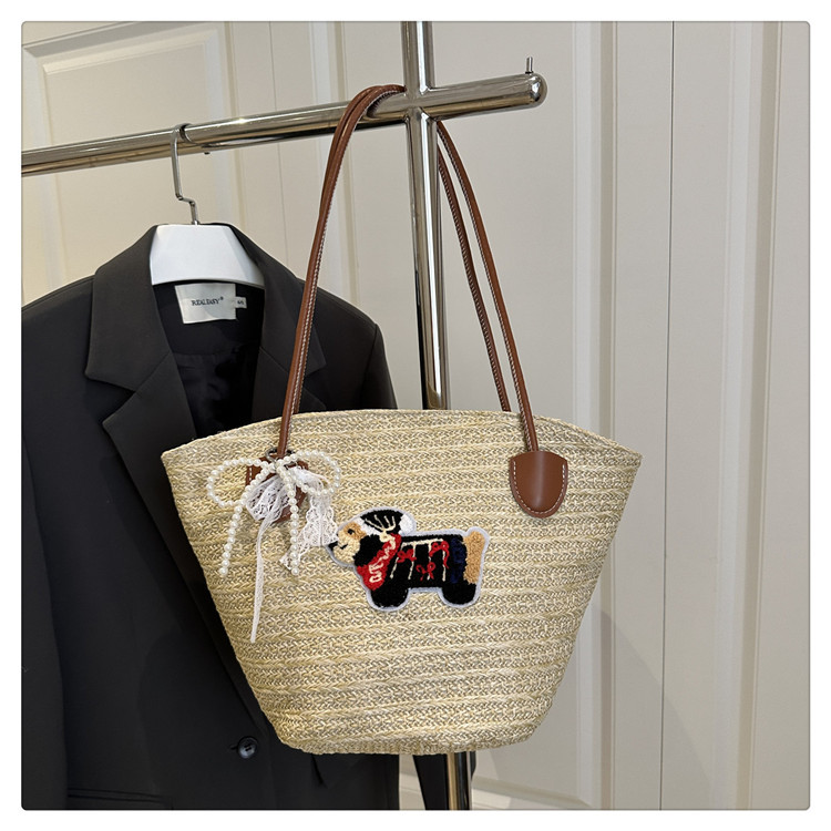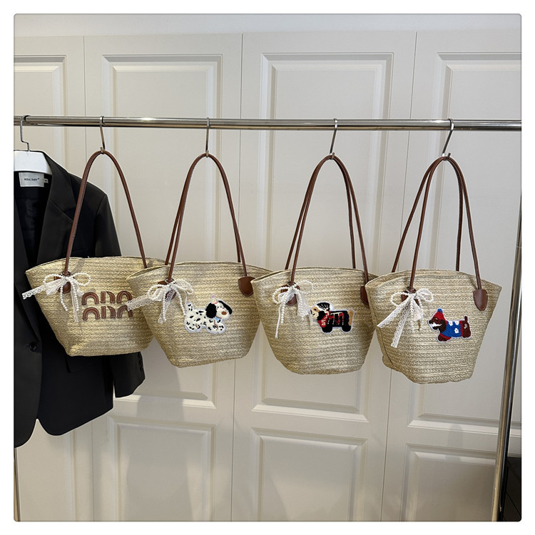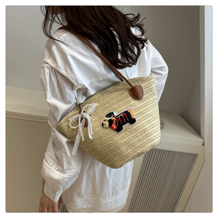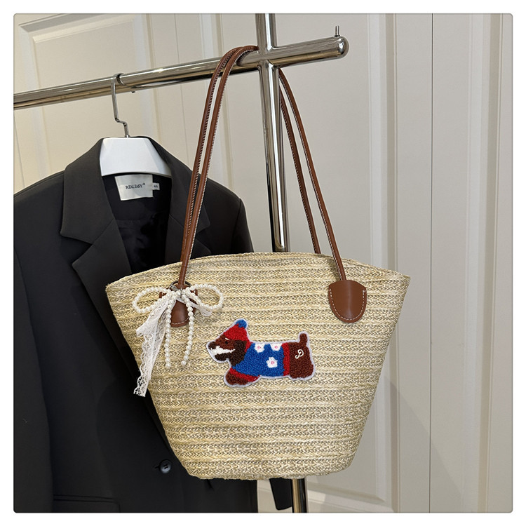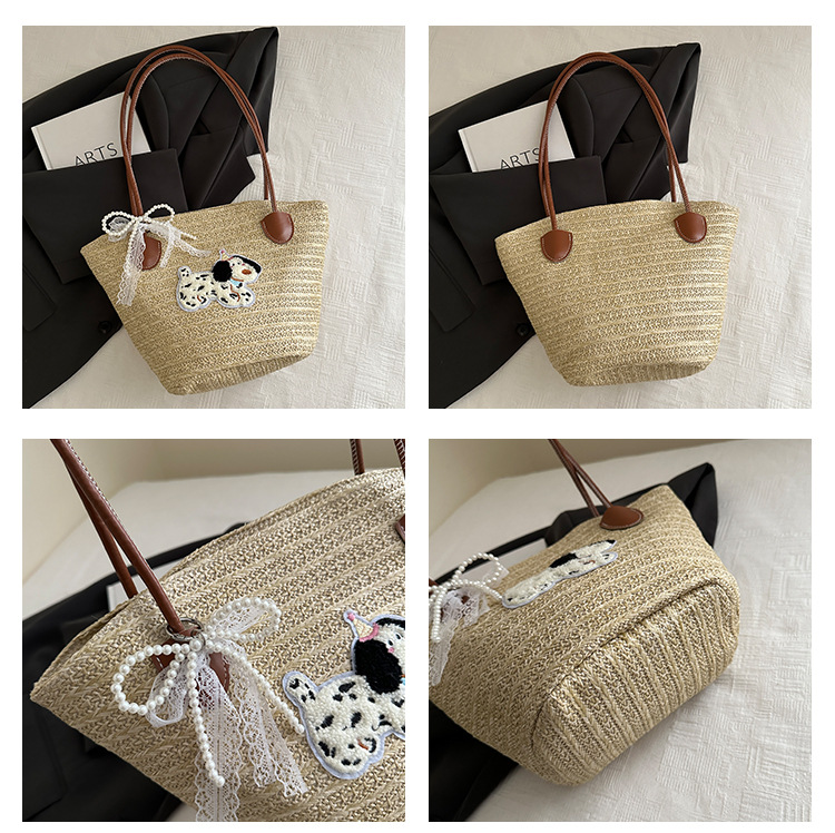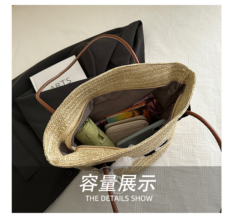 비치 유럽과 미국의 트렌디한 틈새 캐주얼 여성 2025 봄 통근 대용량 밀짚 가방 여성 숄더 토트 백