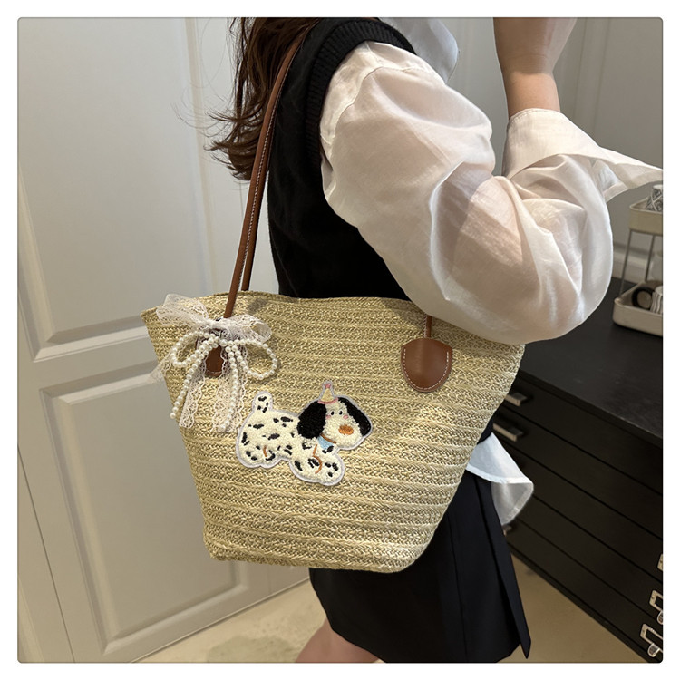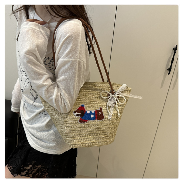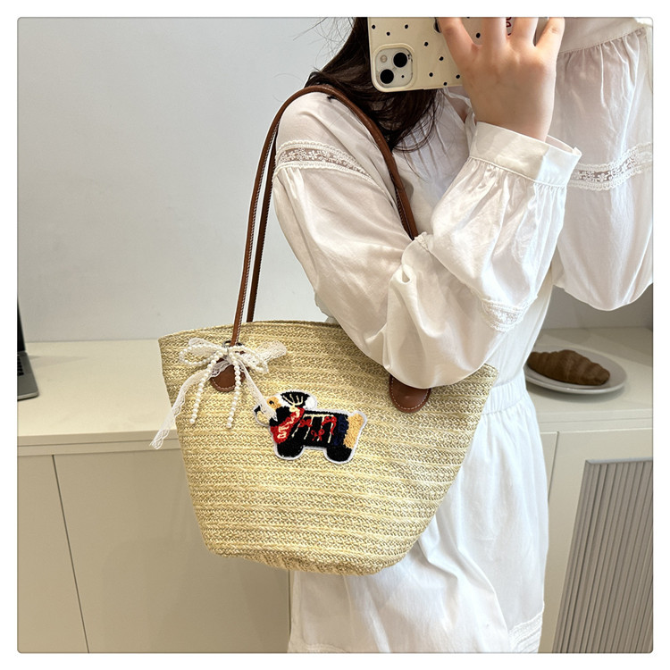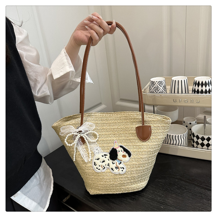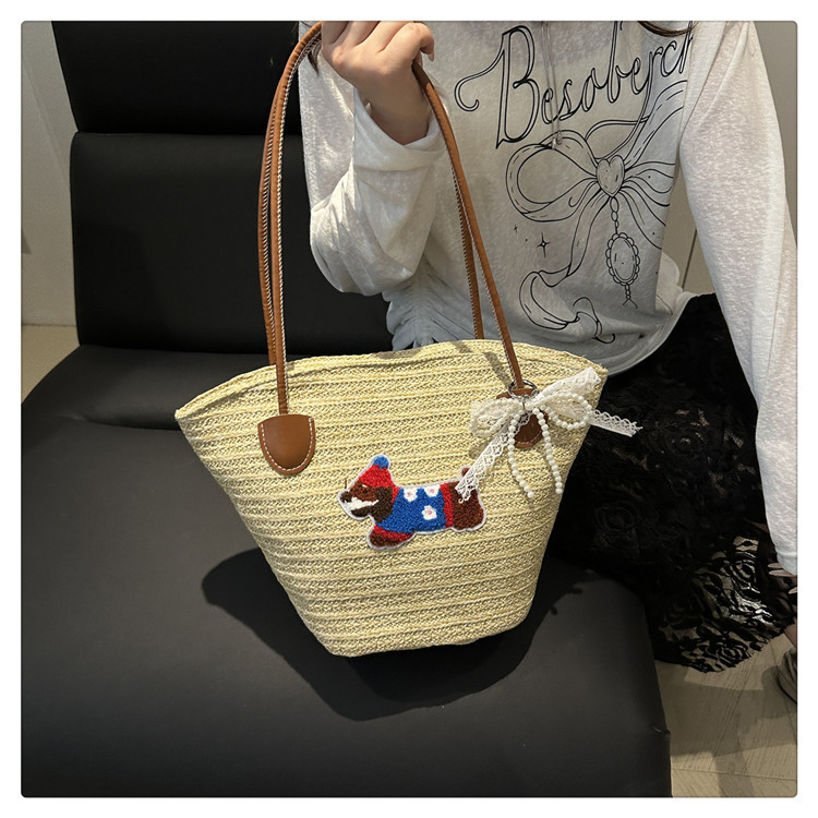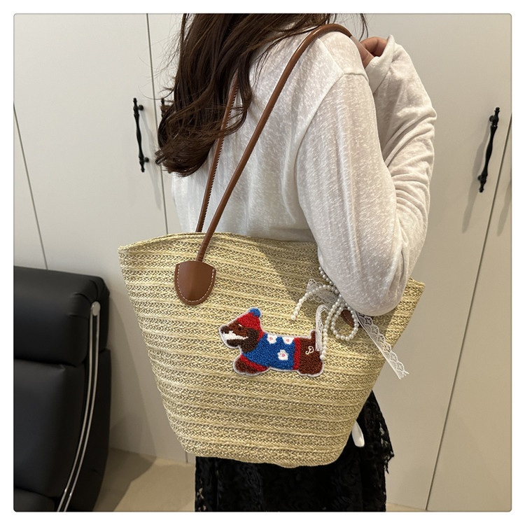 비치 유럽과 미국의 트렌디한 틈새 캐주얼 여성 2025 봄 통근 대용량 밀짚 가방 여성 숄더 토트 백