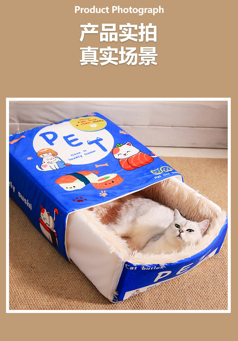 사계절 모두 사용할 수 있는 귀여운 서랍 스낵 상자 고양이 둥지 침대 직사각형 완전 밀폐형 안전 비스킷 상자스토어 가기