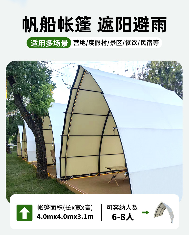야외 상업용 인기 세일링 텐트 숙박 캠핑 케이터링 바베큐 전골 관광지 민슈쿠 야외 캠프 텐트스토어 가기