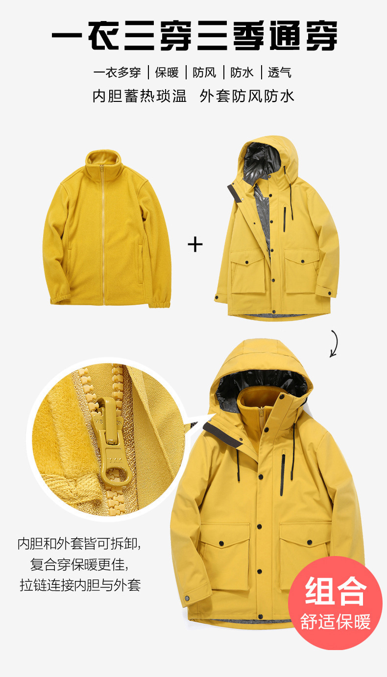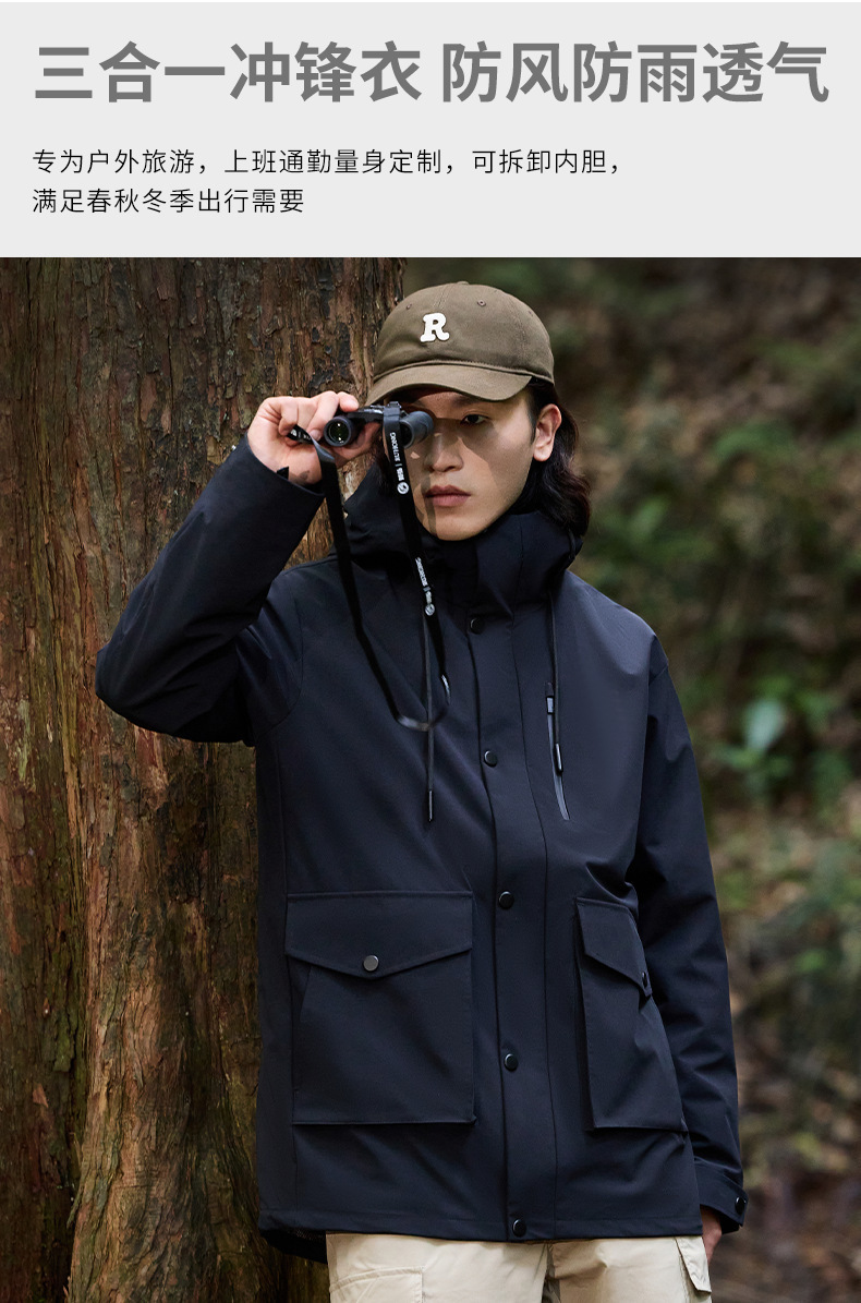 2025 새로운 야외 재킷 남성용 투피스 세트 3-in-one 분리형 작업복 여성용 방풍 및 방수 등산복스토어 가기