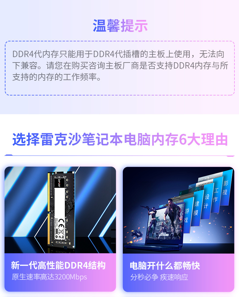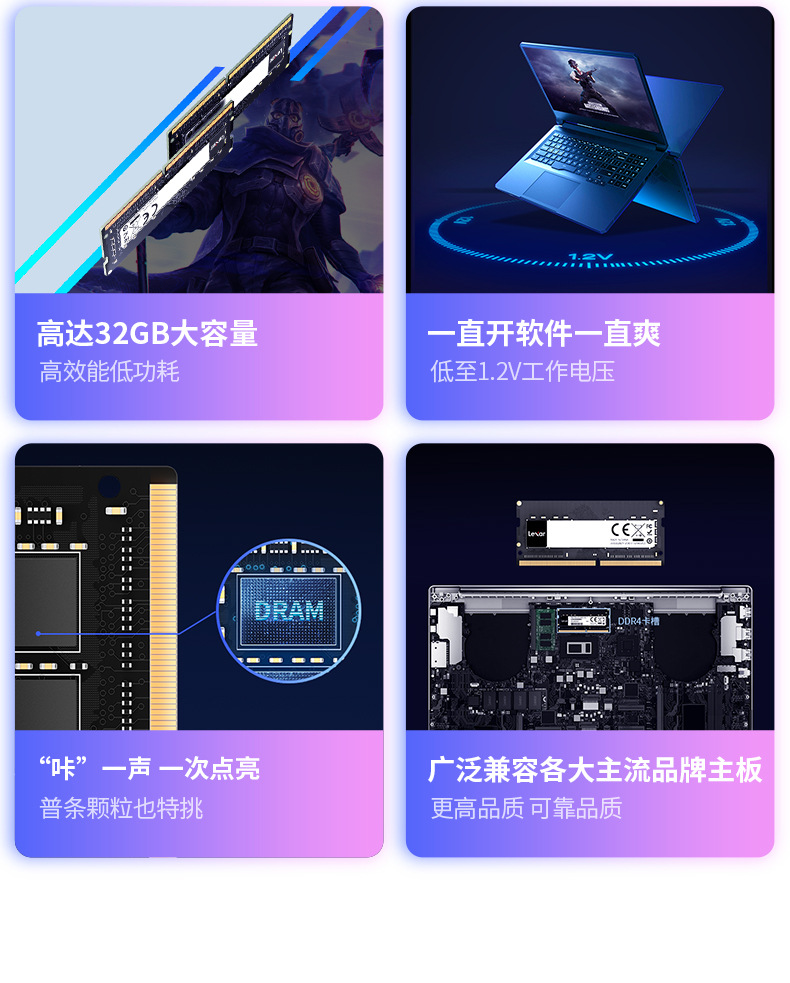 Lexar 노트북 메모리 DDR4 3200 고속 컴퓨터 실행 확장 8G 16G 32G 메모리스토어 가기