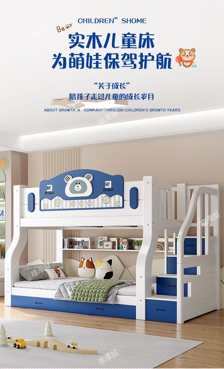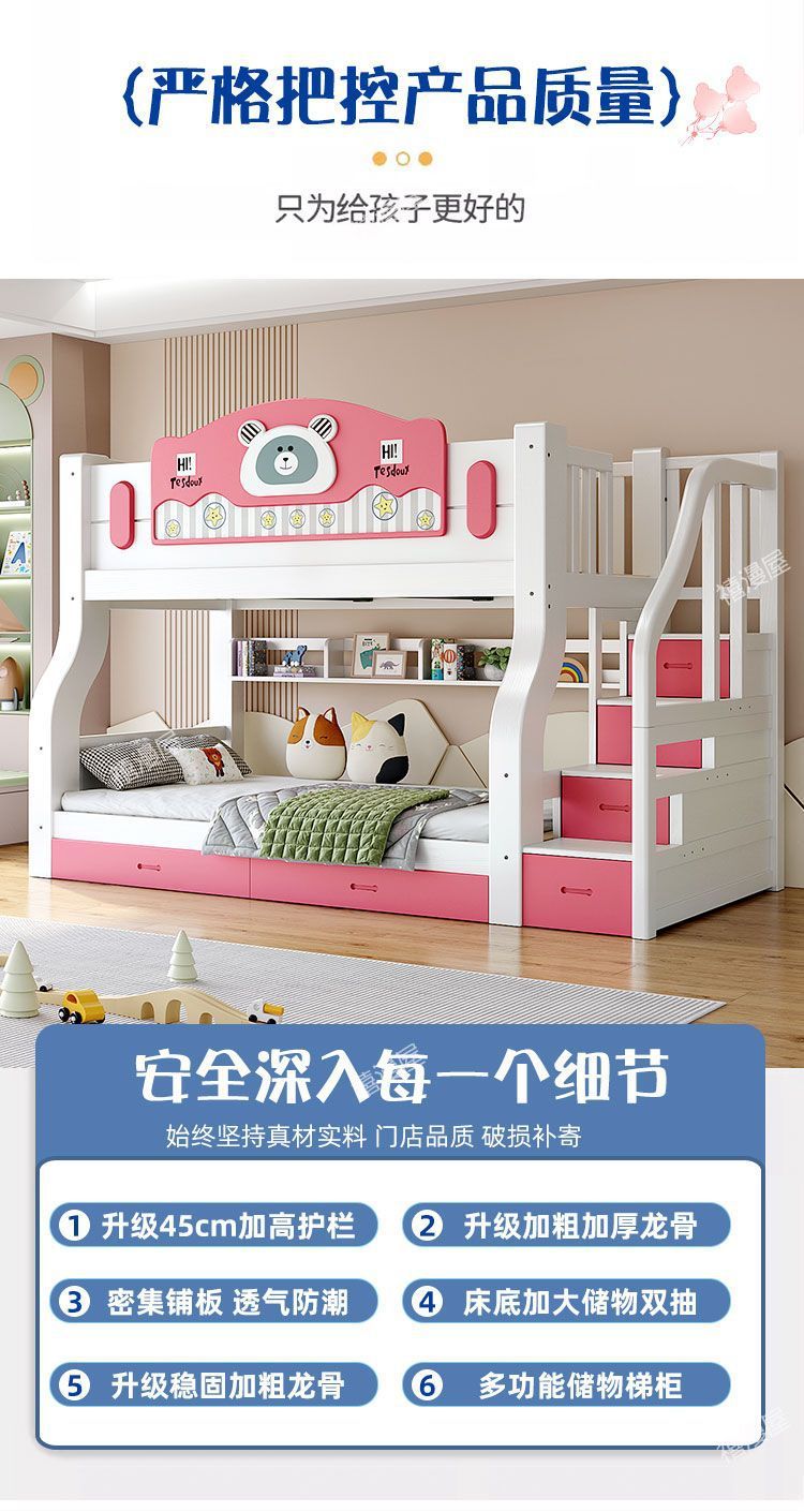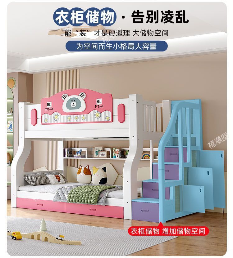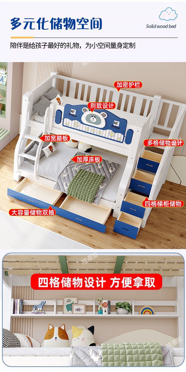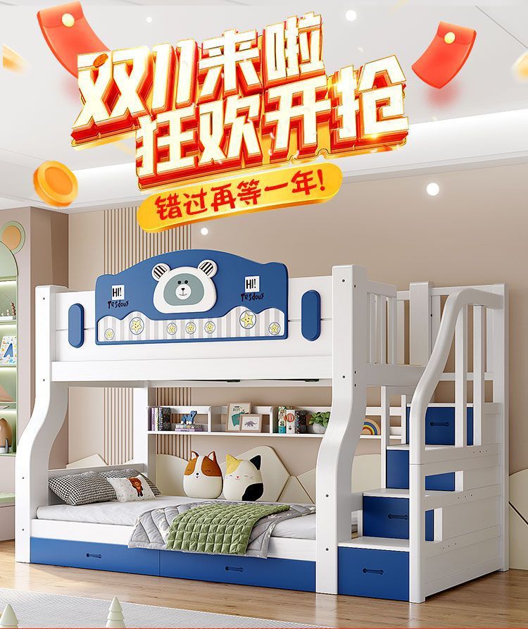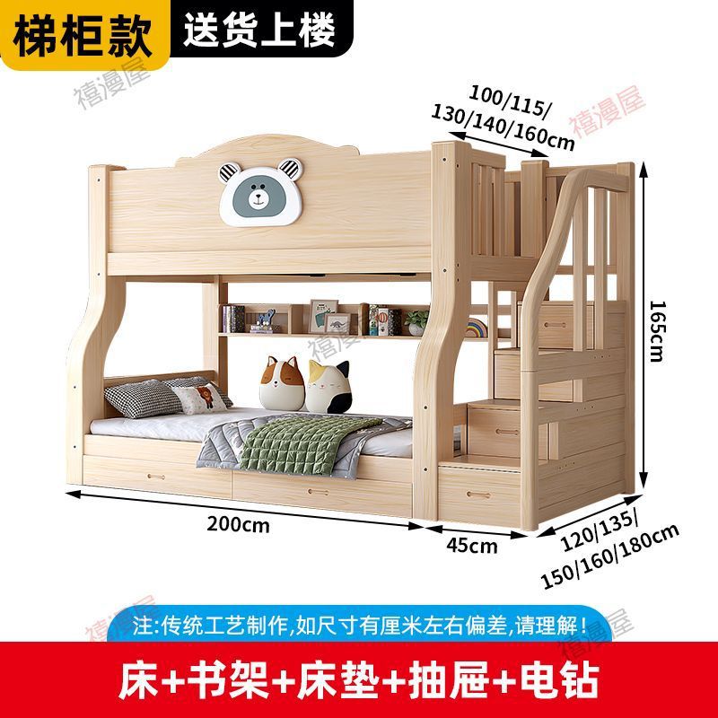 Ximanwu 단단한 나무 이층 침대 성인 이층 침대 어린이 높낮이 침대 이층 침대 더블 침대스토어 가기