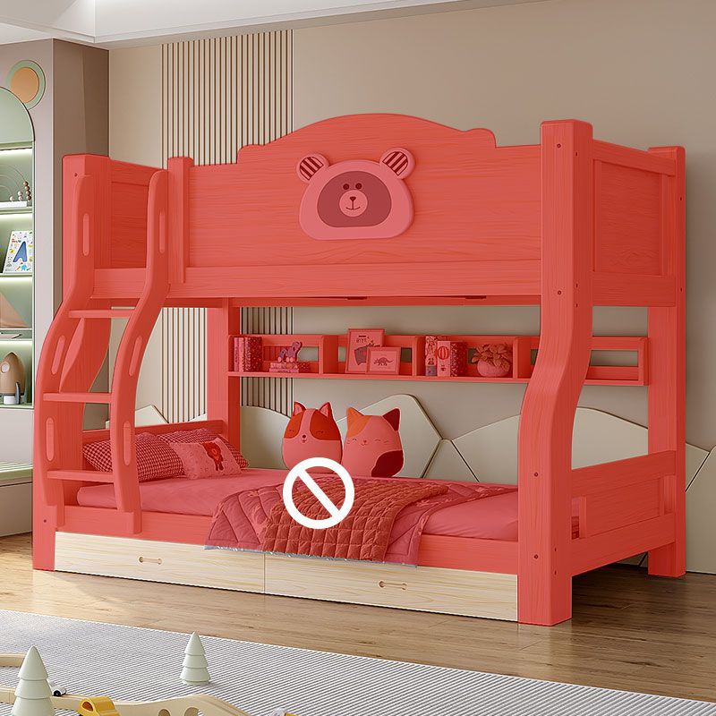 • 사쿠라 핑크 베어 모델 - 원목 직선 사다리 + 책장 + 이중 서랍 + 매트리스 + 설치