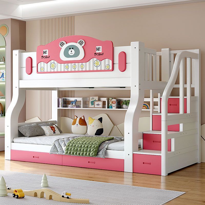 • 사쿠라 핑크 베어 모델 - 원목 사다리 캐비닛 + 책장 + 이중 서랍 + 매트리스 + 설치