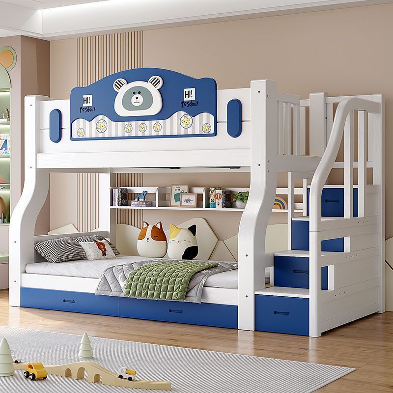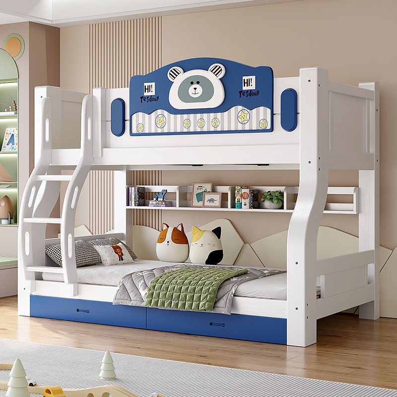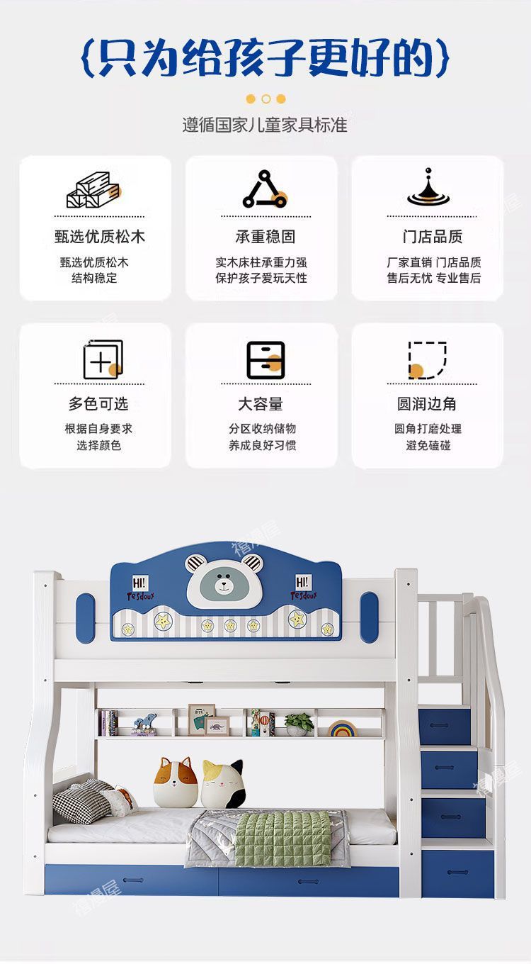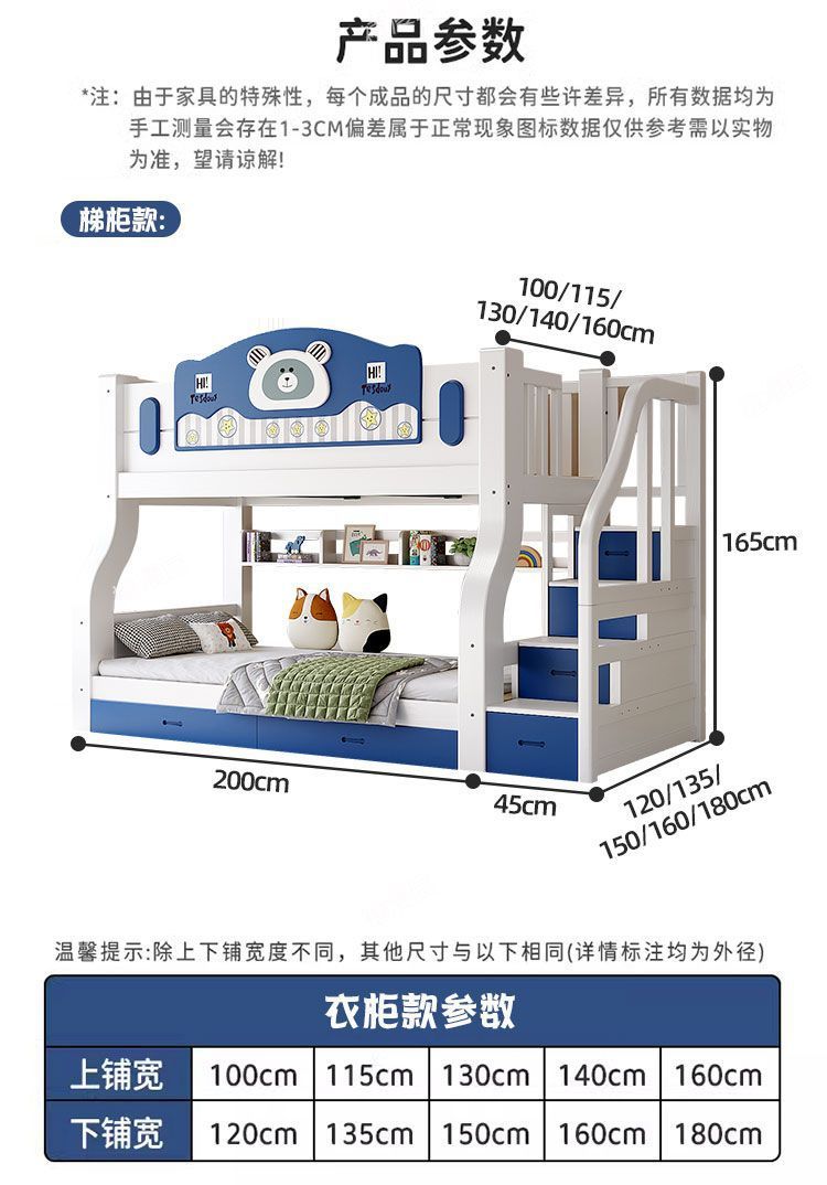 • 하늘색 곰 모형 - 원목 사다리 캐비닛 + 책장 + 이중 서랍 + 매트리스 + 설치