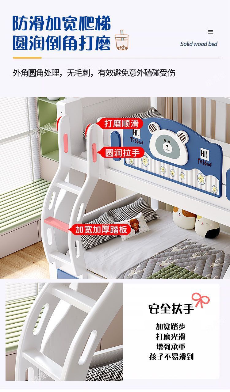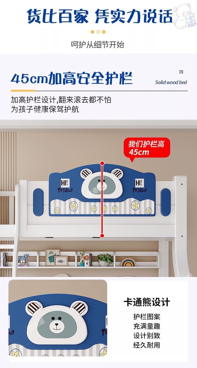 • 하늘색 곰 모형 - 원목 사다리 캐비닛 + 책장 + 이중 서랍 + 매트리스 + 전기 드릴