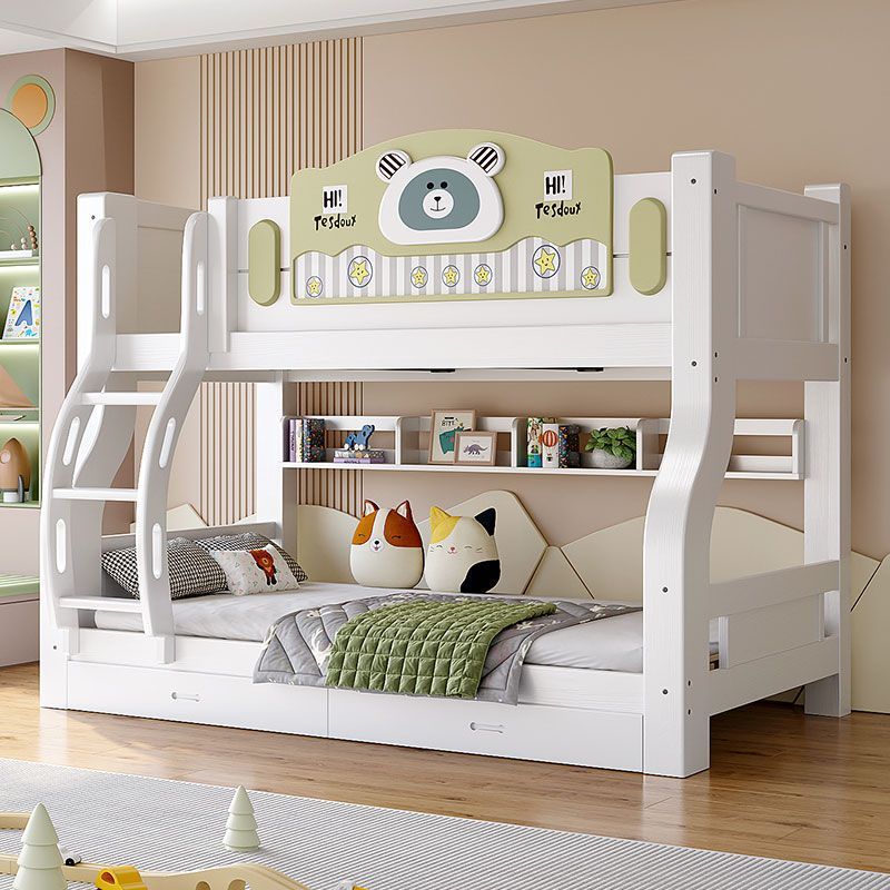 • 녹색과 흰색 곰 모형 - 원목 직선 사다리 + 책장 + 이중 서랍 + 매트리스 + 설치
