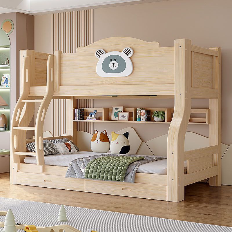 • 통나무 곰 모형 - 원목 직선 사다리 + 책장 + 이중 서랍