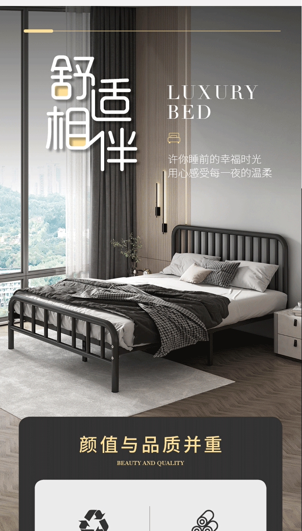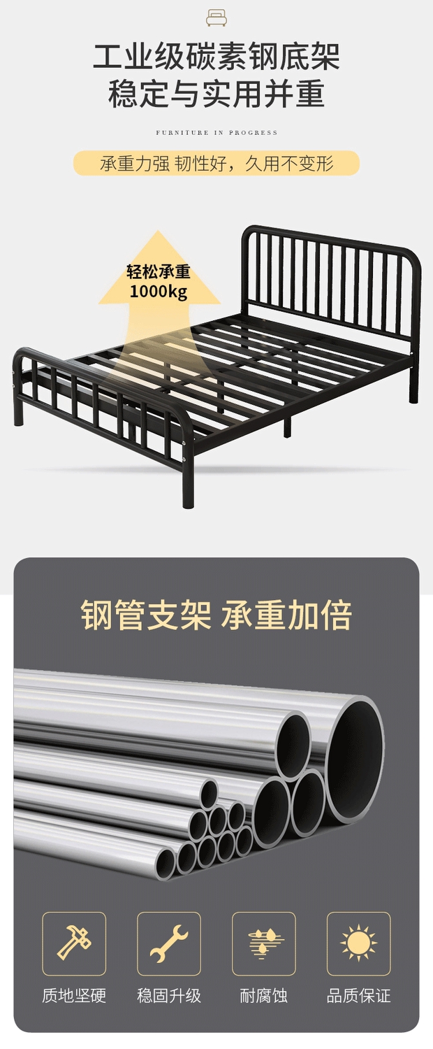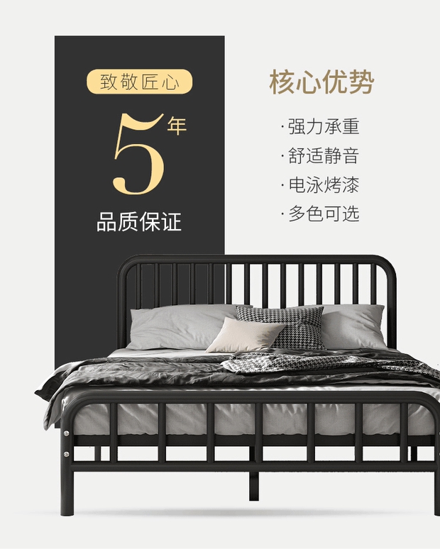 침대 모던 심플 철제 침대 1.5m 더블 1.8 어린이 철제 침대 임대 주택 철제 프레임 북유럽 싱글 1.2m스토어 가기