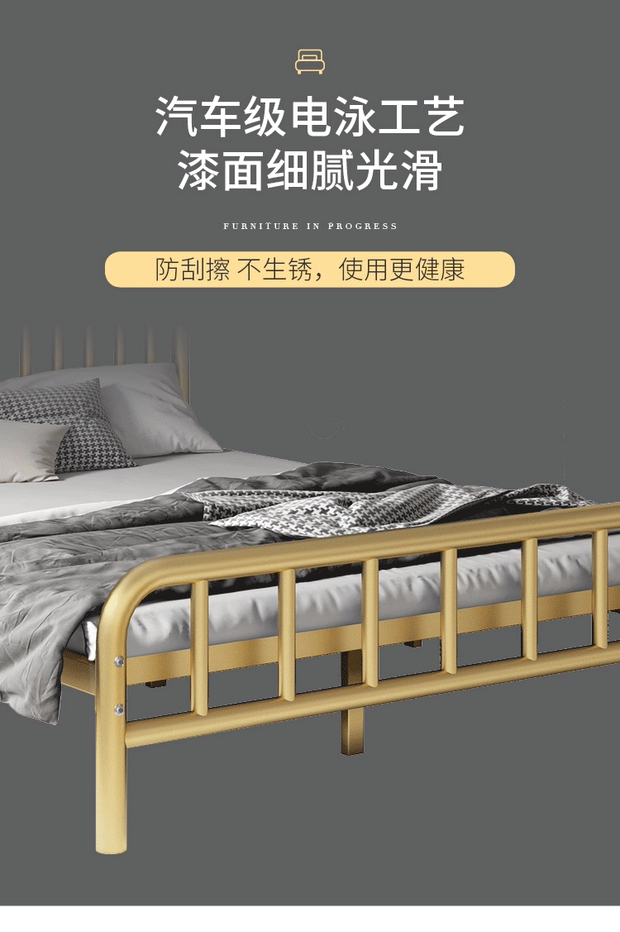 침대 모던 심플 철제 침대 1.5m 더블 1.8 어린이 철제 침대 임대 주택 철제 프레임 북유럽 싱글 1.2m