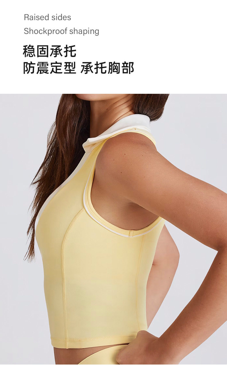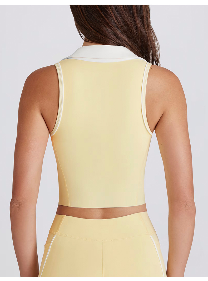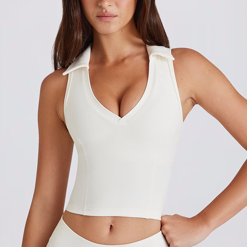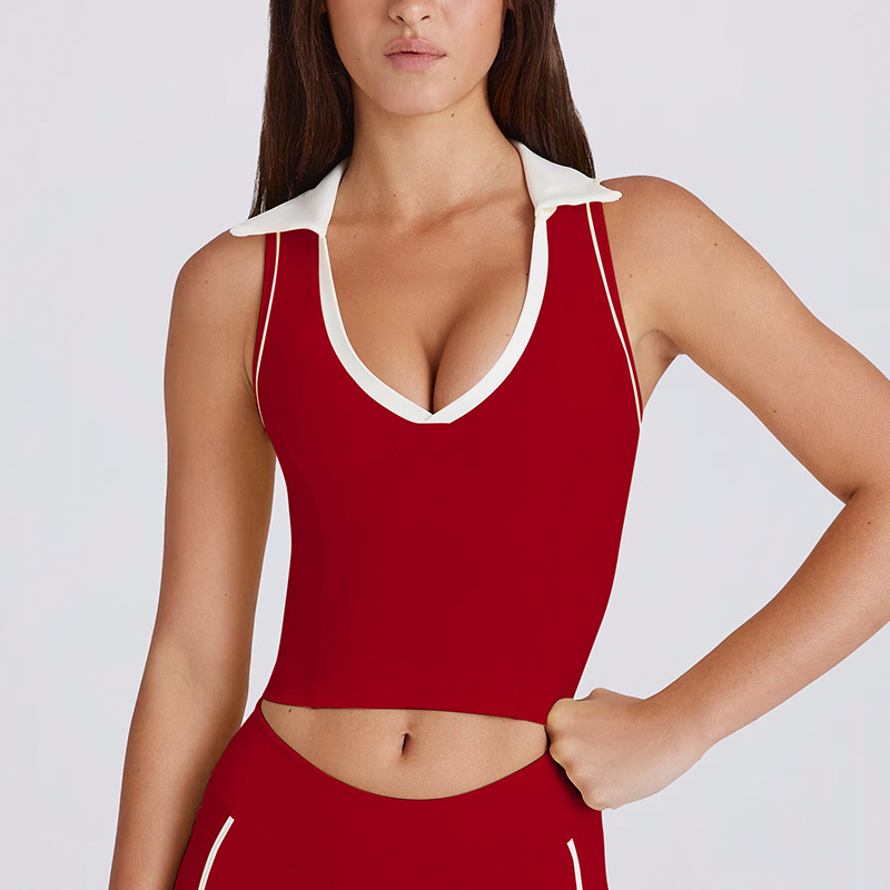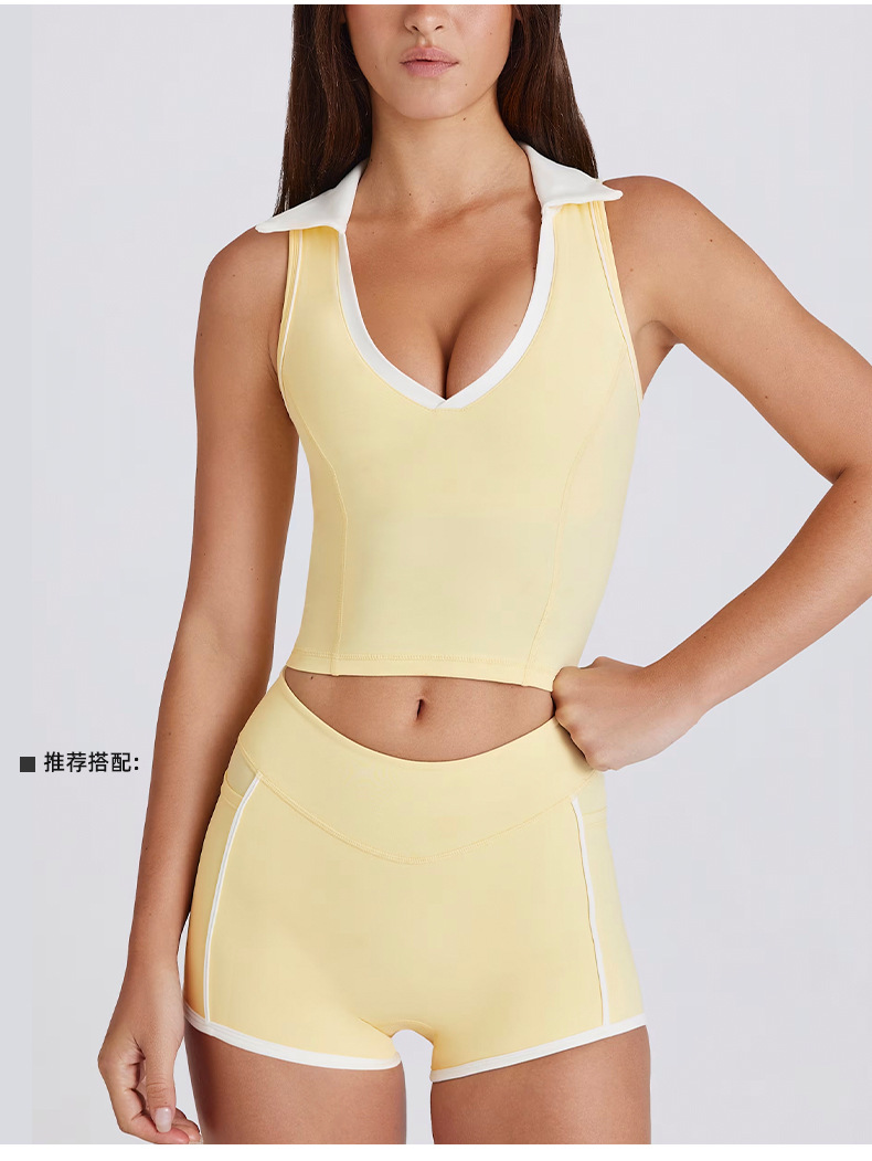 민소매 러닝 스포츠 필라테스 피트니스 브이넥 탑 조끼 가슴 패드가 있는 상의 배색 라펠 요가복 세트스토어 가기
