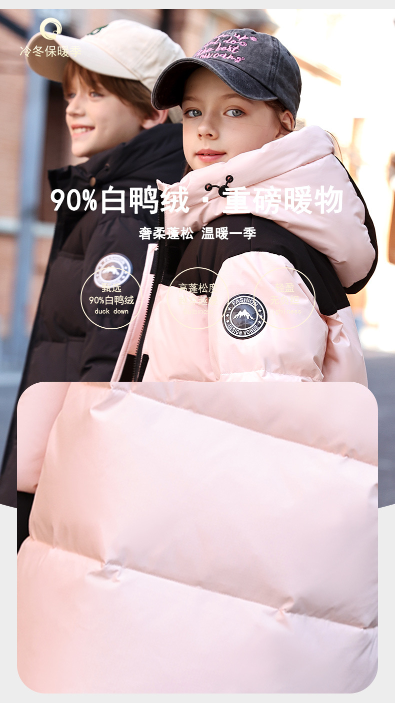 아동복 아동 다운 재킷 소년 중간 길이 2025 새로운 스타일 소녀 중대형 아동 겨울 두꺼운 따뜻한 재킷스토어 가기