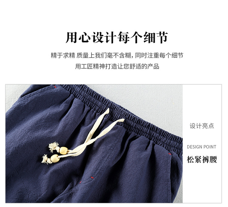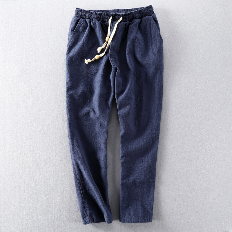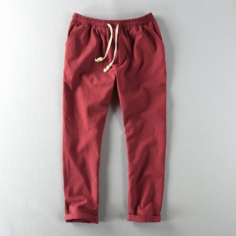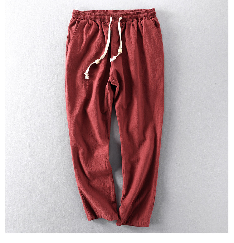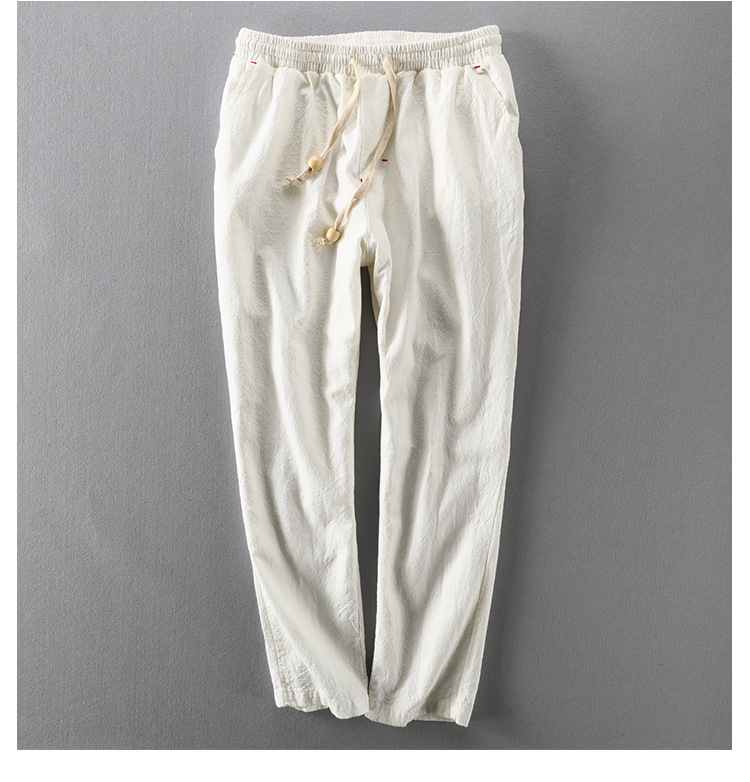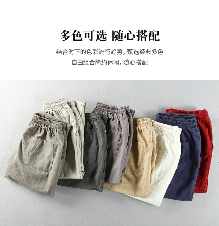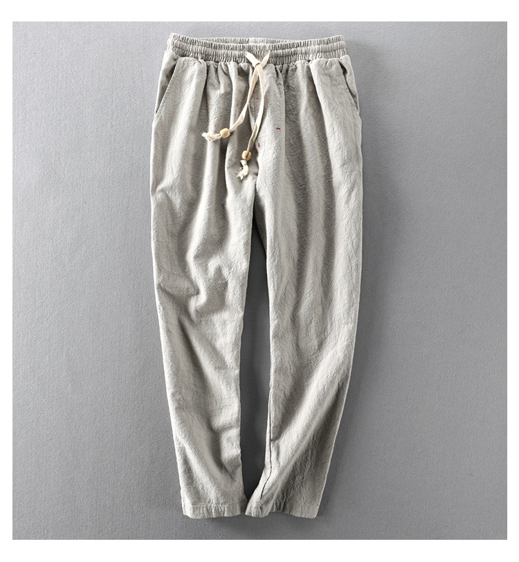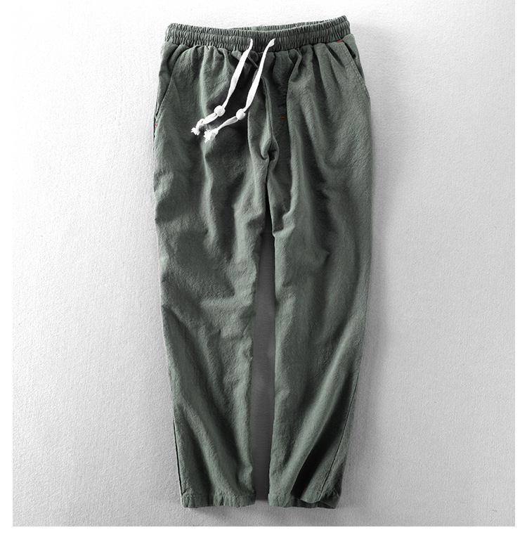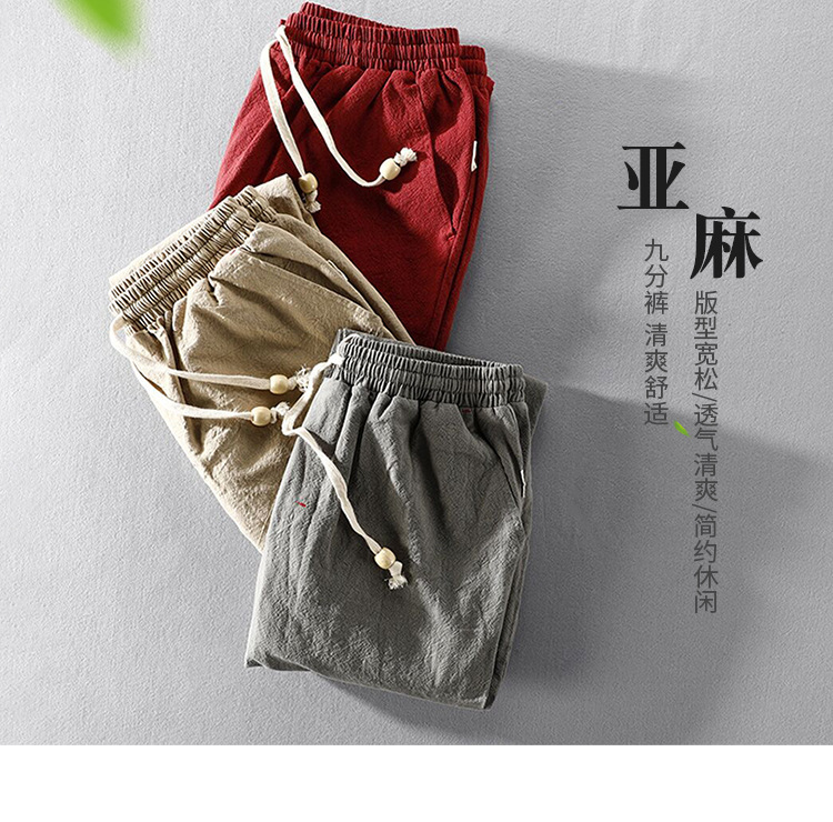 여름 신작 린넨 바지 남성 일본식 캐주얼 루즈 청소년 코튼 린넨 캐주얼 바지 트렌디-생각