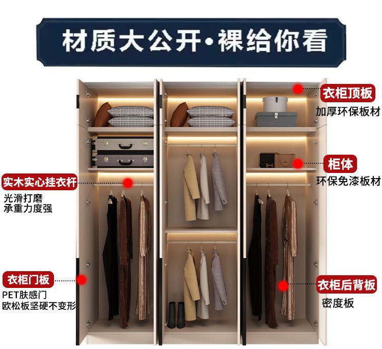 가정용 침실용 원목 옷장, 간단하고 현대적인 임대 주택, 양문 옷장, 간단한 소형 아파트 어린이 캐비닛
