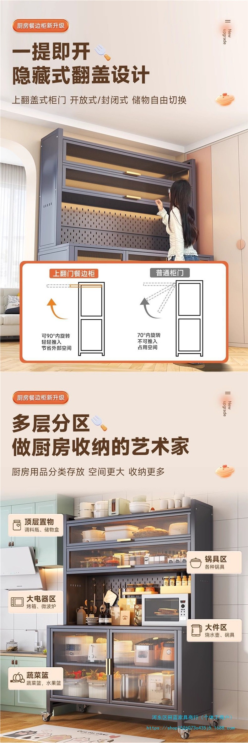 주방 다기능 수납 선반, 슬레이트 찬장, 가정용 방진 수납 캐비닛, 다층 스낵 캐비닛, 바닥에서 천장까지의 수납 캐비닛