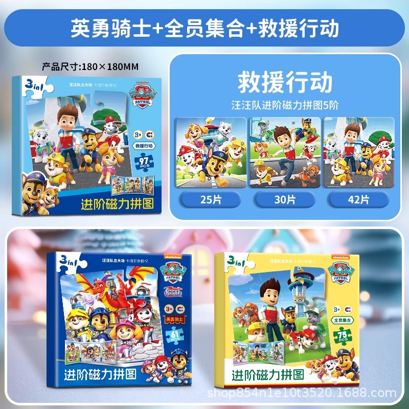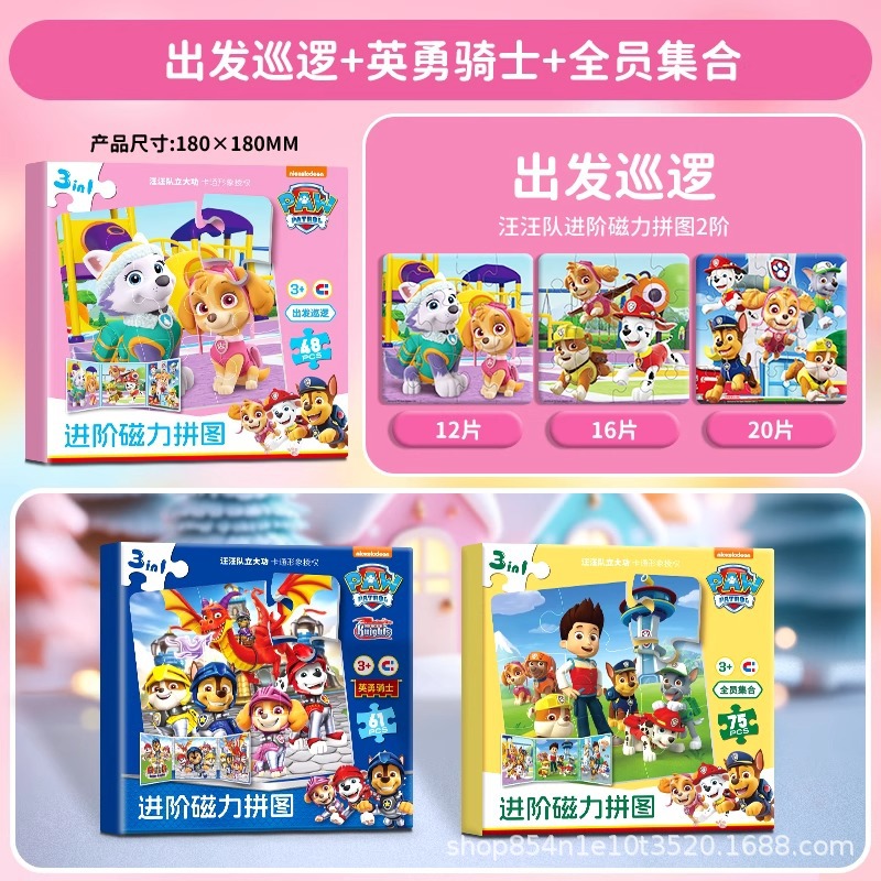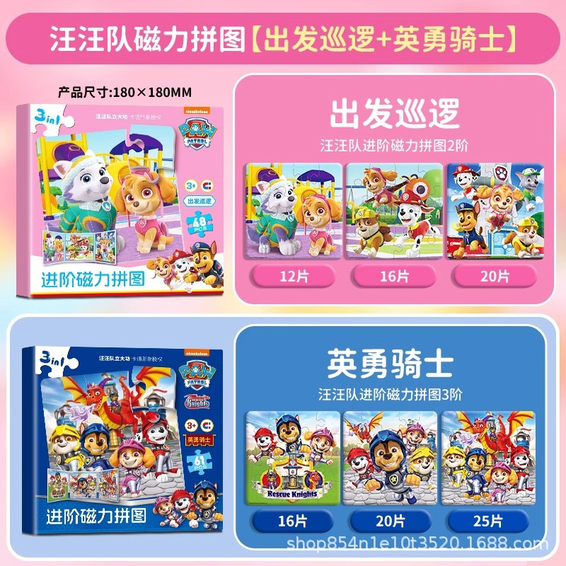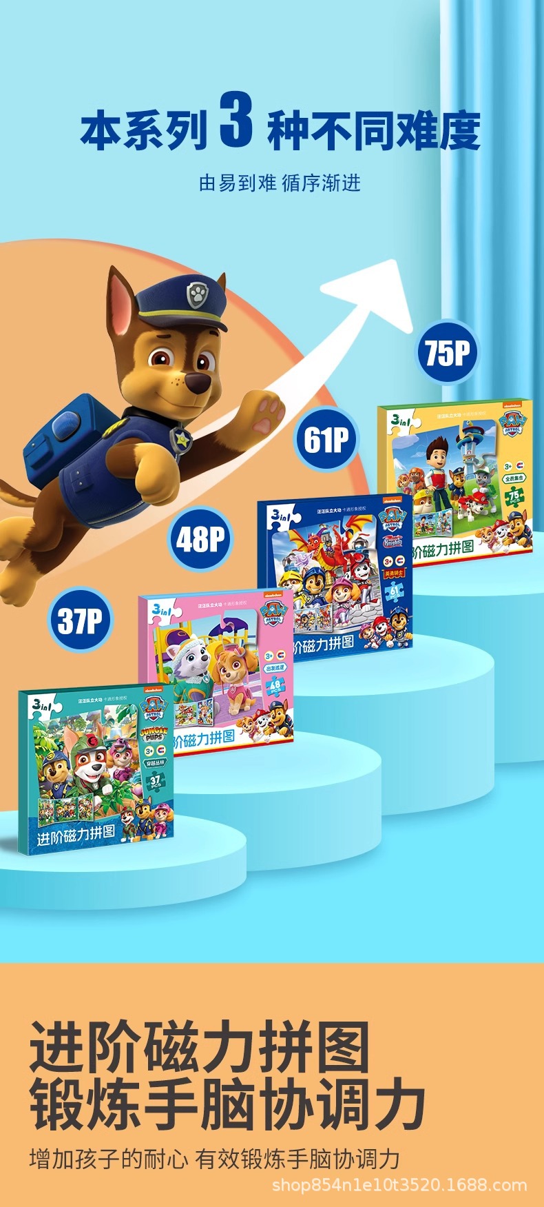 Paw Patrol 자기 퍼즐 2-3 ~ 6 세 어린이 교육 유아 아기 조기 교육 소년과 소녀 자기 흡입 플랫 그림 장난감스토어 가기