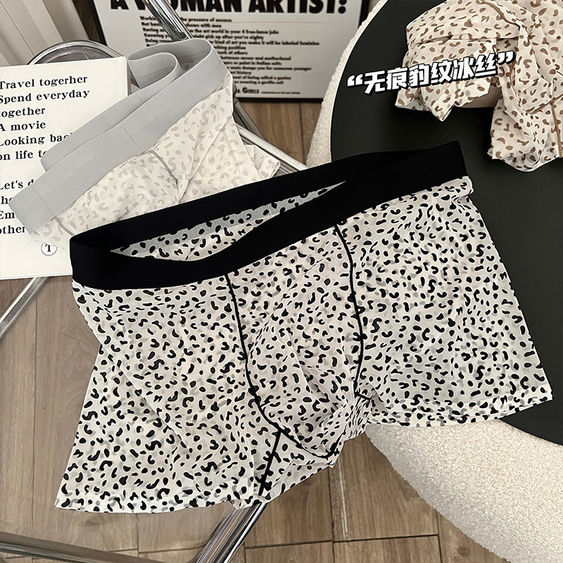 2026 와일드 보이즈 레오파드 프린트 밀크 도그 컬러 시스템 풀 투명 바닥 통기성 아이스 실크 남성 사각 팬티스토어 가기