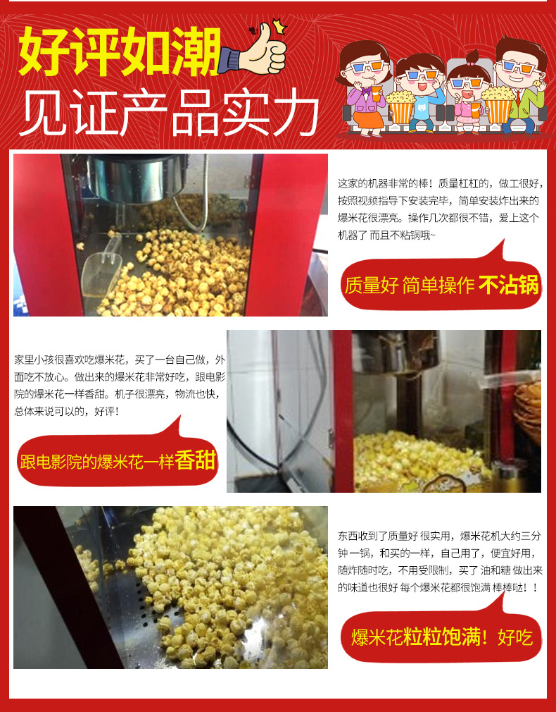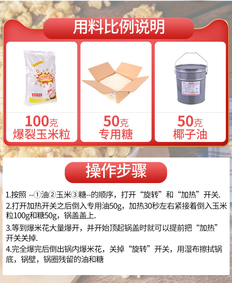• [차이나 레드 업그레이드 모델] 옥상 팝콘 기계 [시험용 원자재 및 도구 3팩 무료]