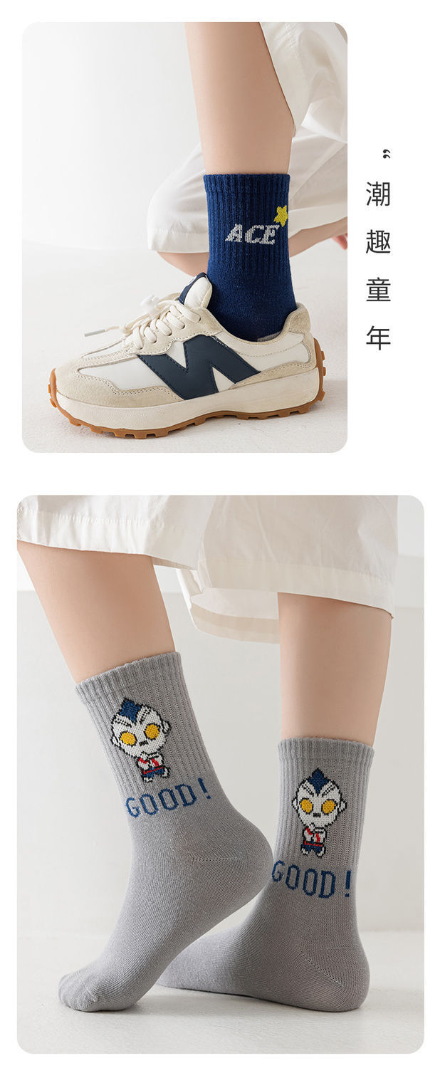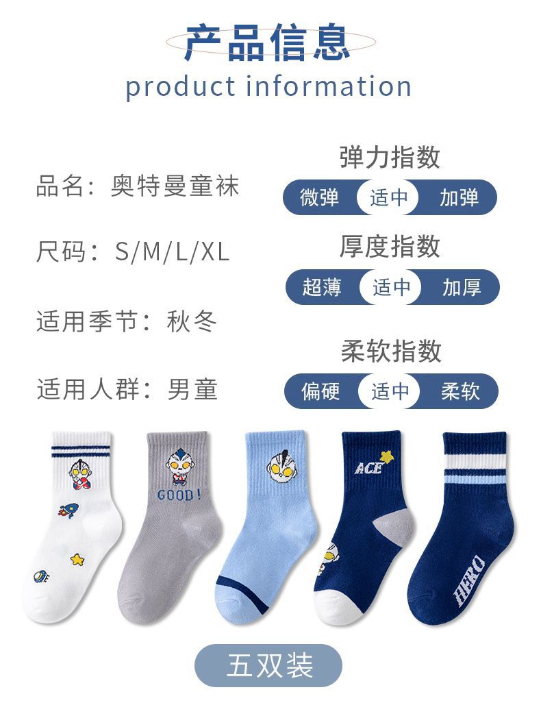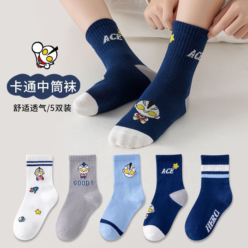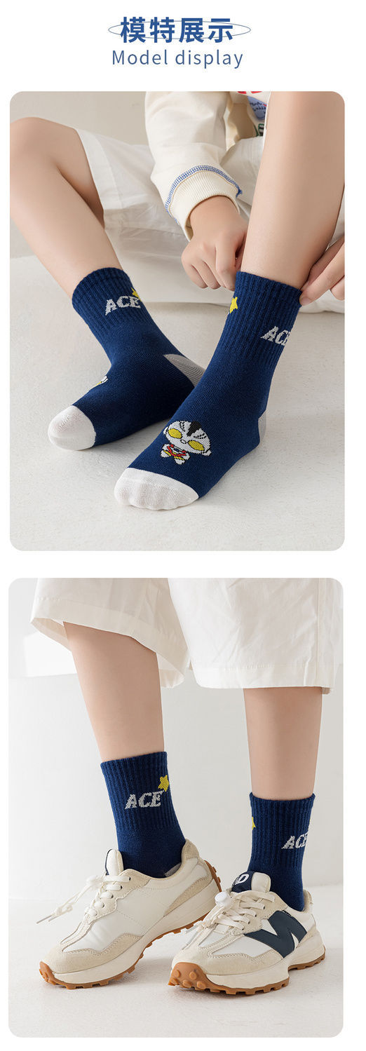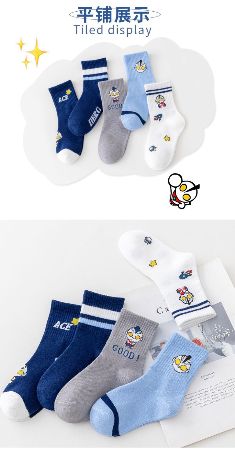 어린이 양말, 소년, 중대형 어린이 만화 울트라맨 아기 소년 봄, 가을 중간 튜브 따뜻하고 탈취제 양말 도매
