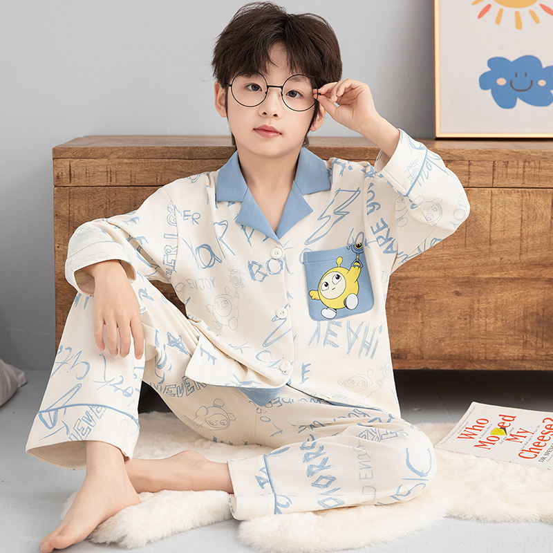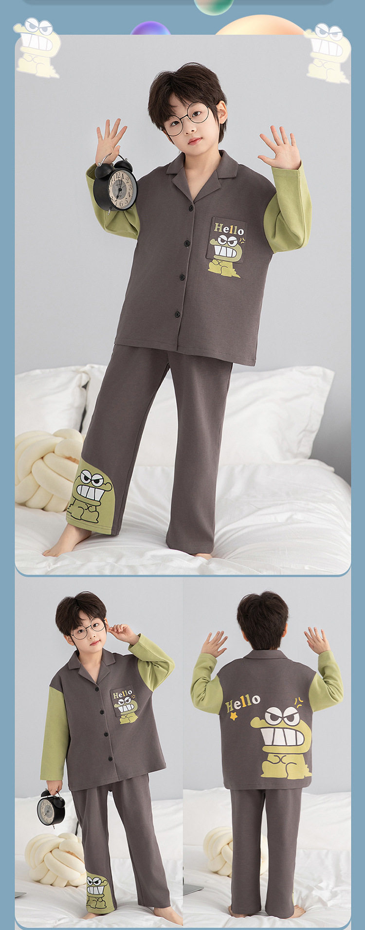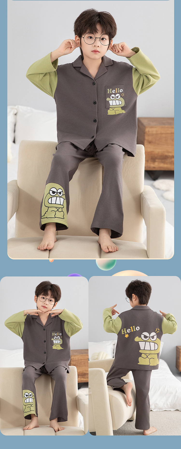 소년 잠옷 2025 새로운 봄, 가을 순수 면화 긴팔 청소년 소년 중대형 어린이 가정 의류 세트