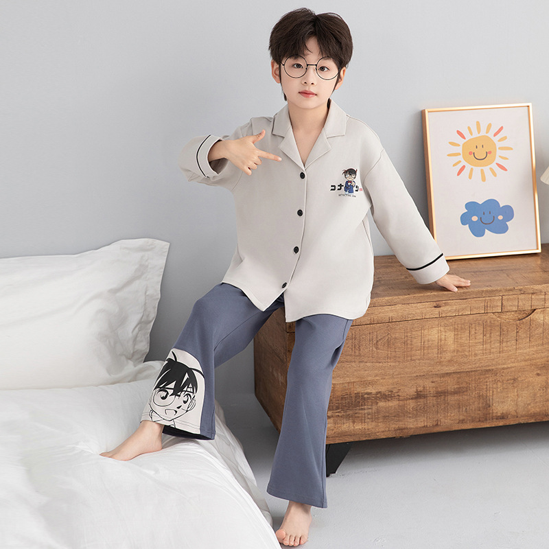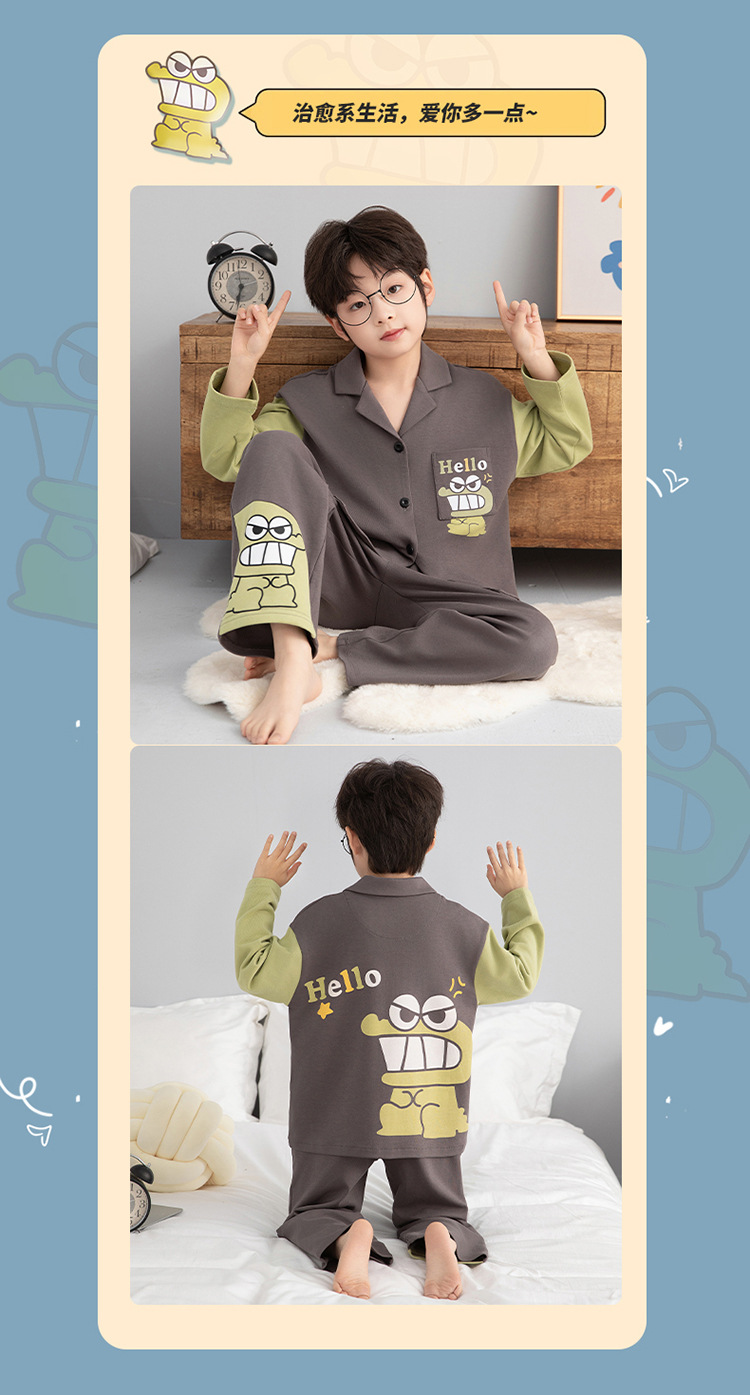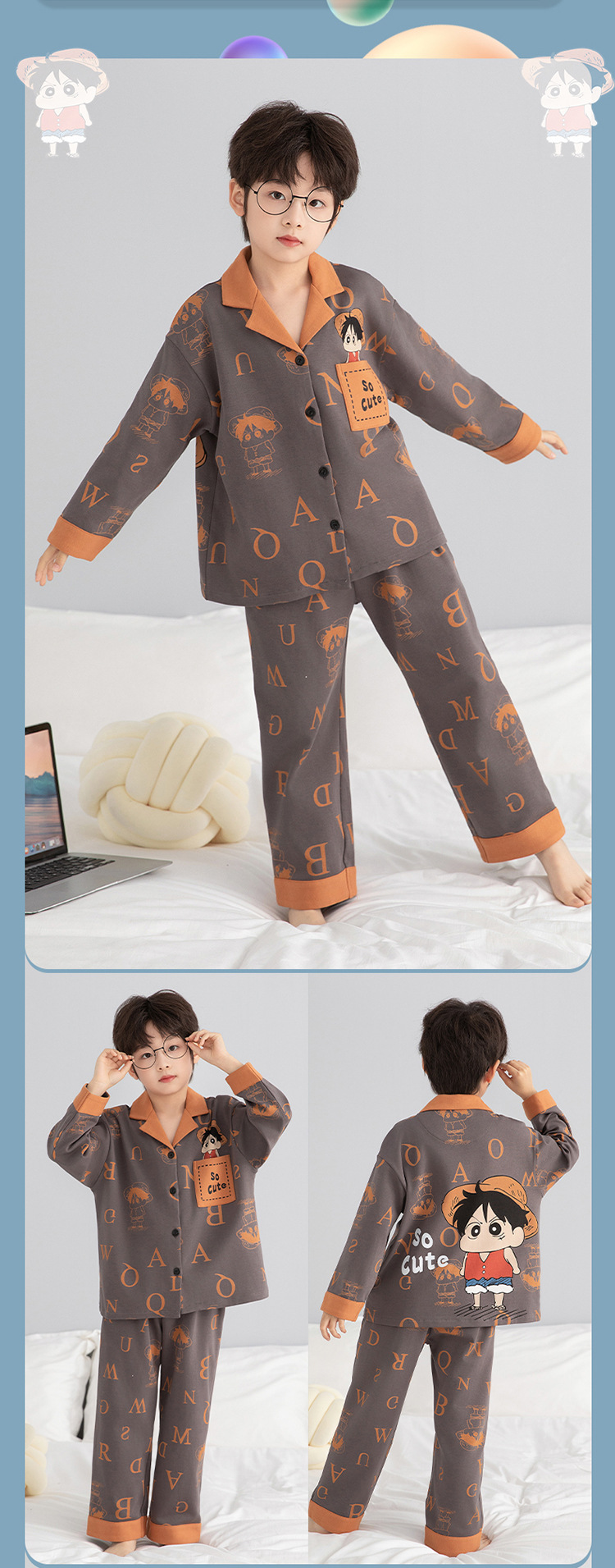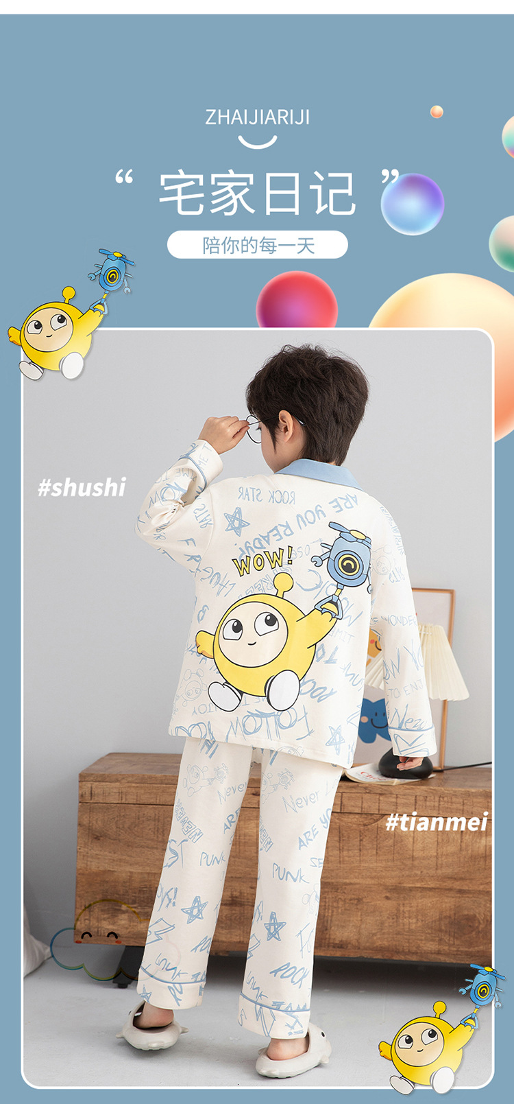 소년 잠옷 2025 새로운 봄, 가을 순수 면화 긴팔 청소년 소년 중대형 어린이 가정 의류 세트