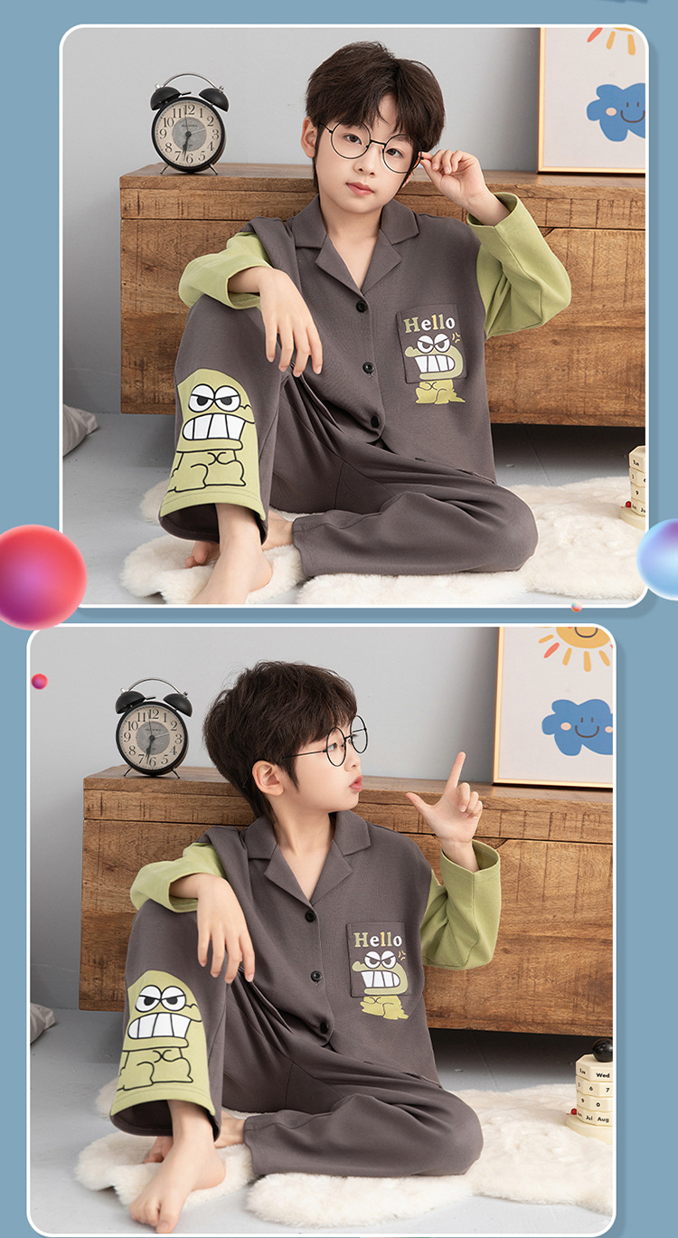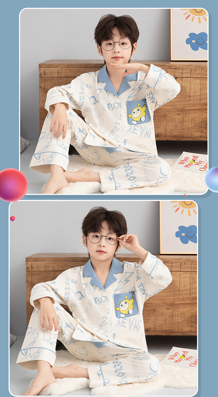 소년 잠옷 2025 새로운 봄, 가을 순수 면화 긴팔 청소년 소년 중대형 어린이 가정 의류 세트스토어 가기