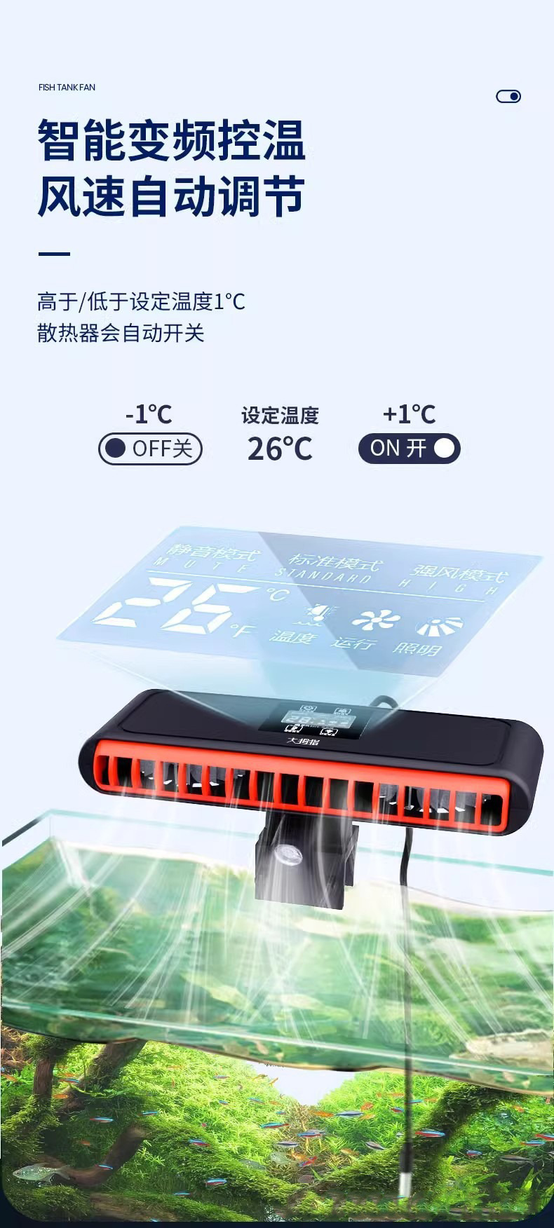 • 표시등 모델은 90CM 이하의 수조에 적합합니다.