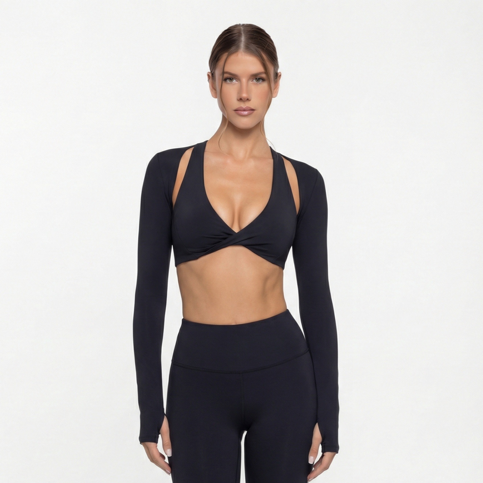 국경 간 유럽과 미국의 요가복, 가슴 패드가 있는 슬림하고 통기성이 뛰어난 여성용 페이크 투피스 스포츠 탑, 피트니스 러닝 누드 슈트스토어 가기