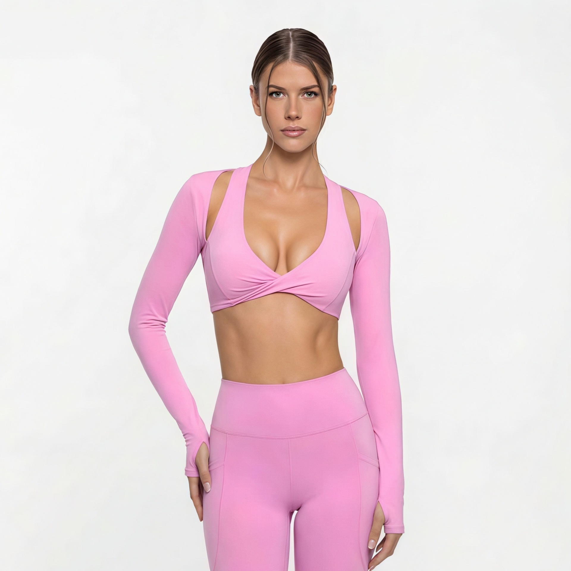 국경 간 유럽과 미국의 요가복, 가슴 패드가 있는 슬림하고 통기성이 뛰어난 여성용 페이크 투피스 스포츠 탑, 피트니스 러닝 누드 슈트