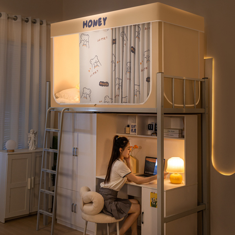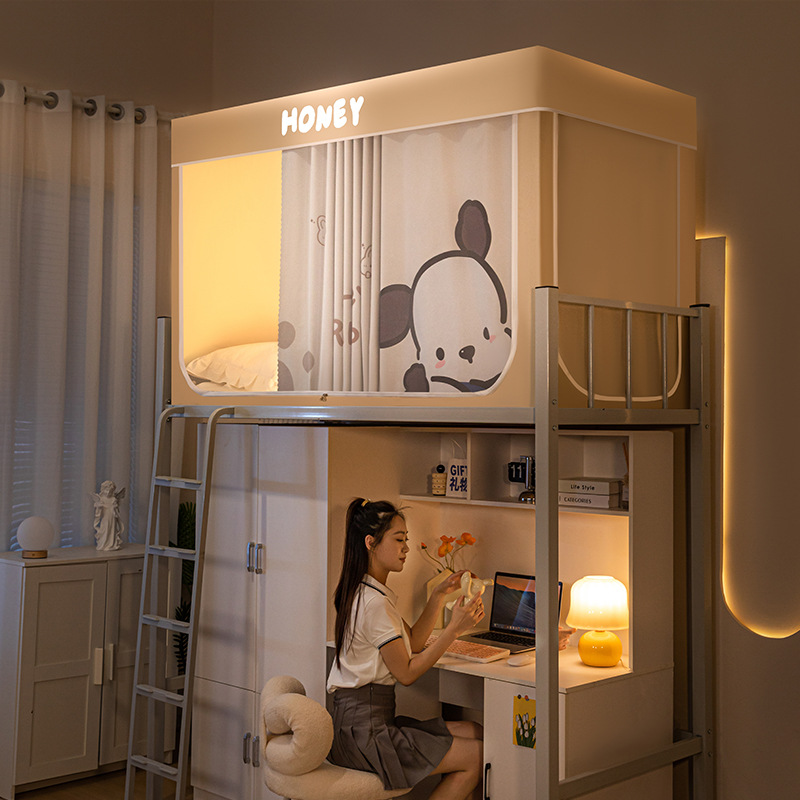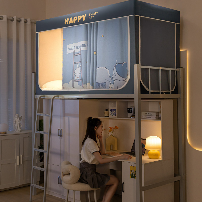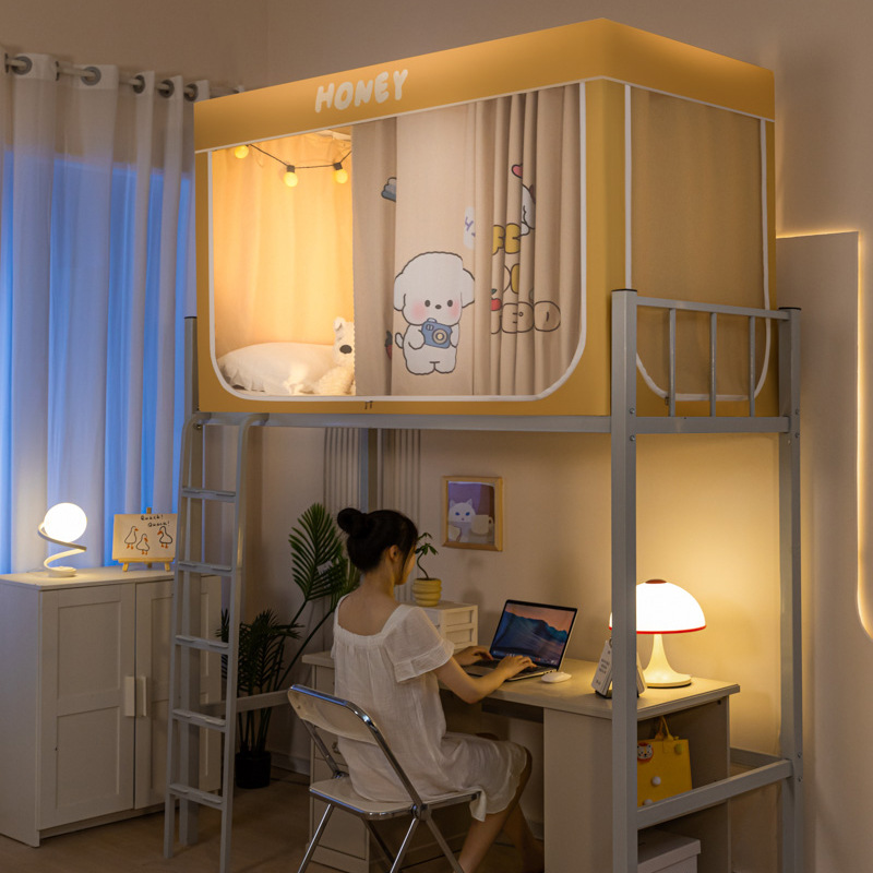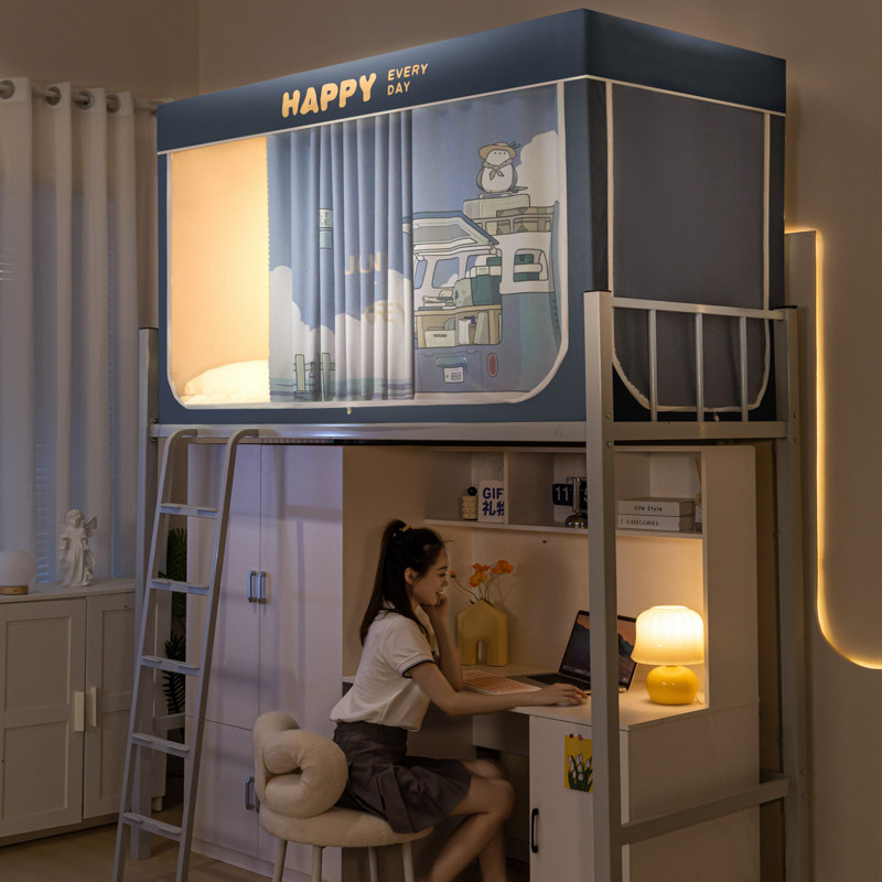 학생 기숙사 이층 침대용 맞춤형 강력한 차광 두꺼운 침대 커튼, 범용 모기장 일체형 침대 커튼스토어 가기