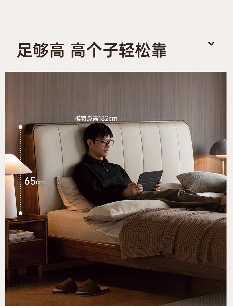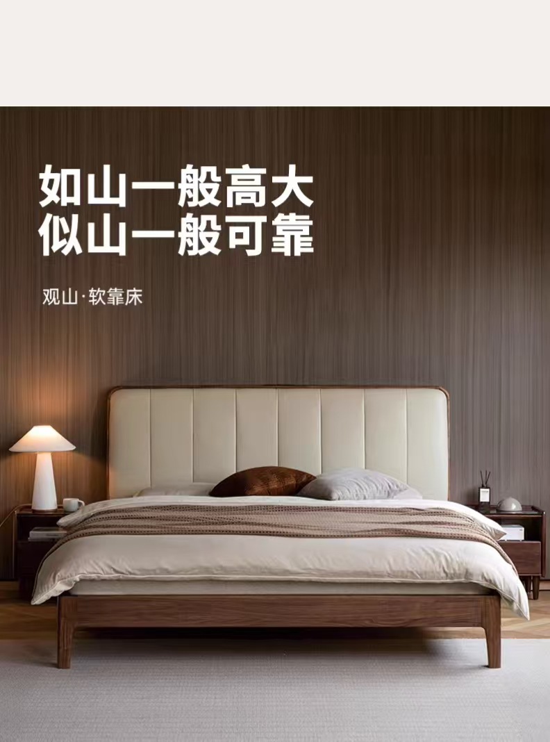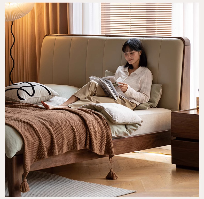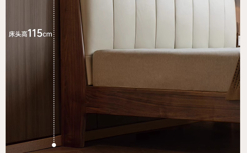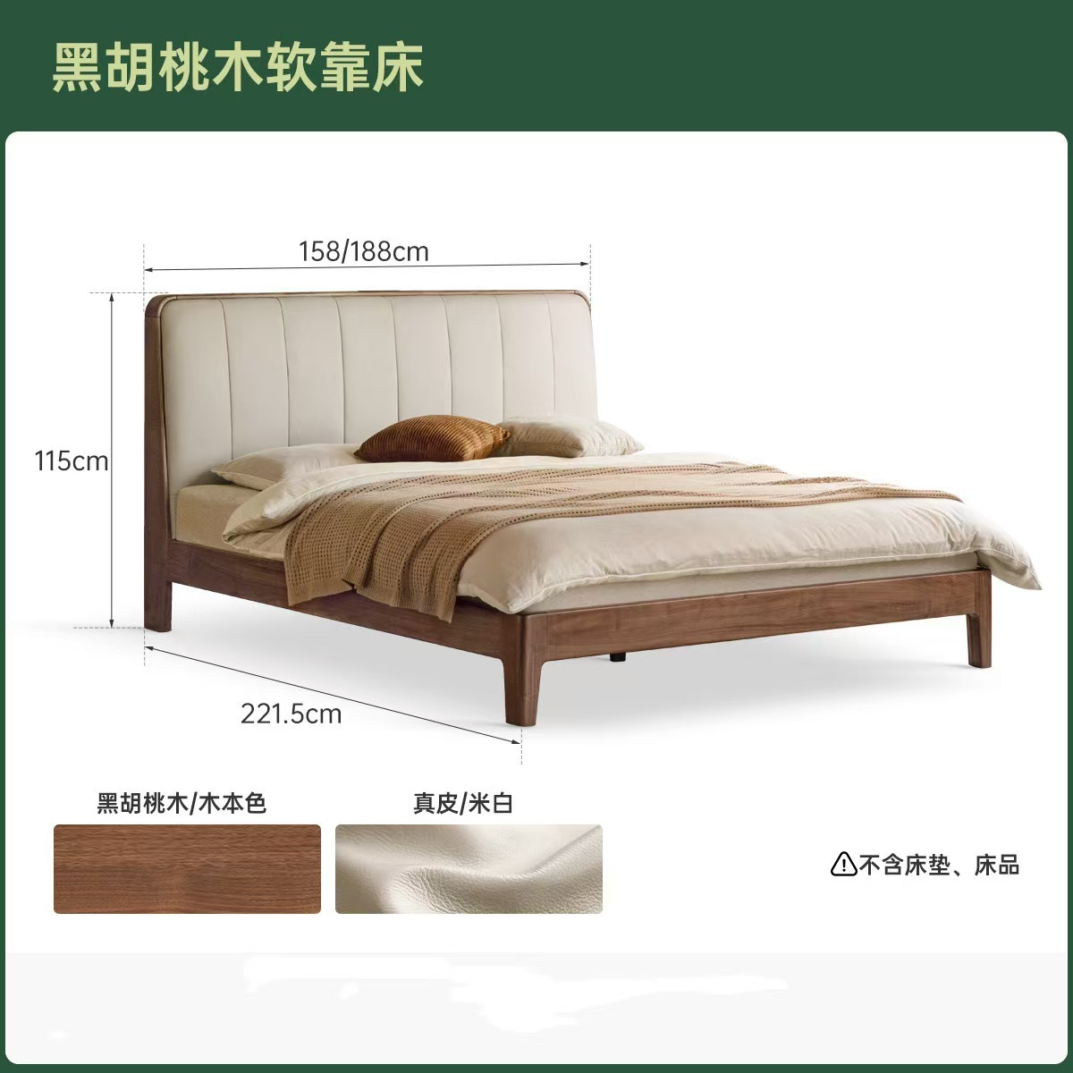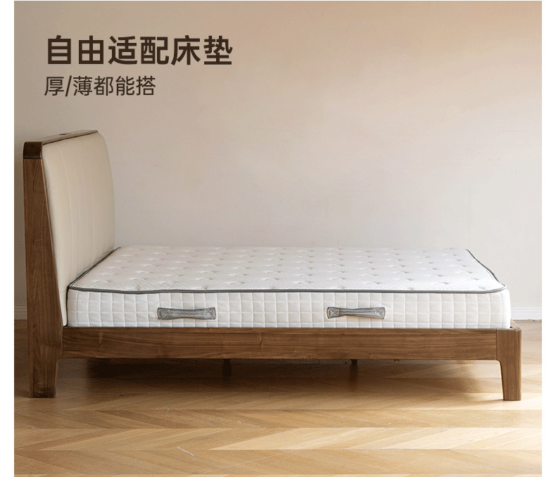단단한 나무 침대 가죽 부드러운 포장 침대 간단한 북미 검은 호두 더블 침대 침실 소켓 1.68m 대형 침대스토어 가기
