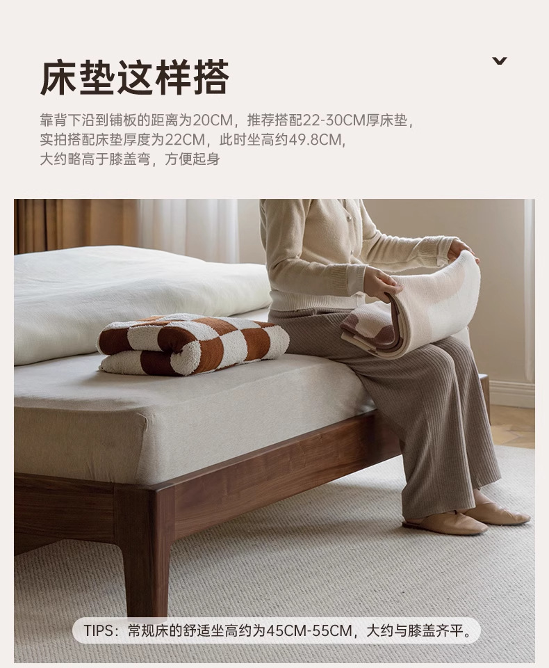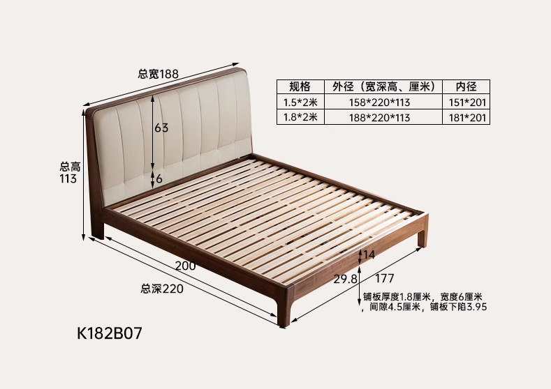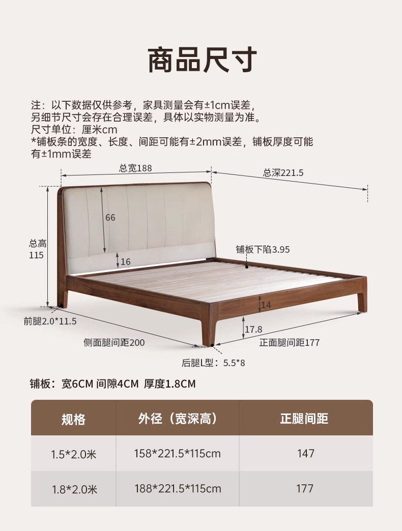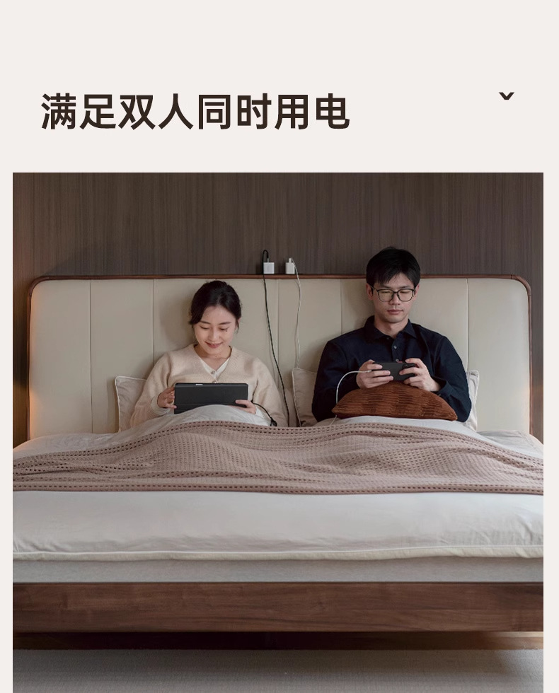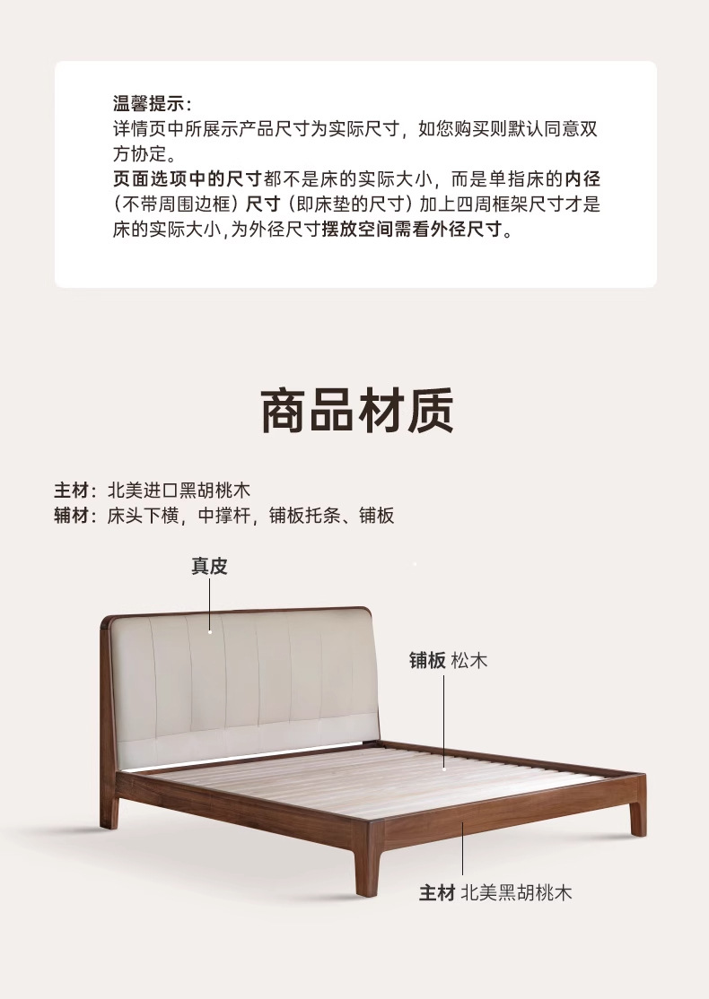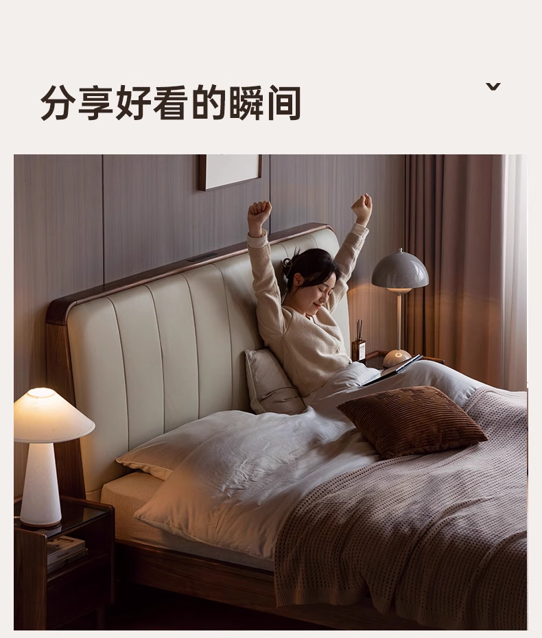 단단한 나무 침대 가죽 부드러운 포장 침대 간단한 북미 검은 호두 더블 침대 침실 소켓 1.68m 대형 침대스토어 가기
