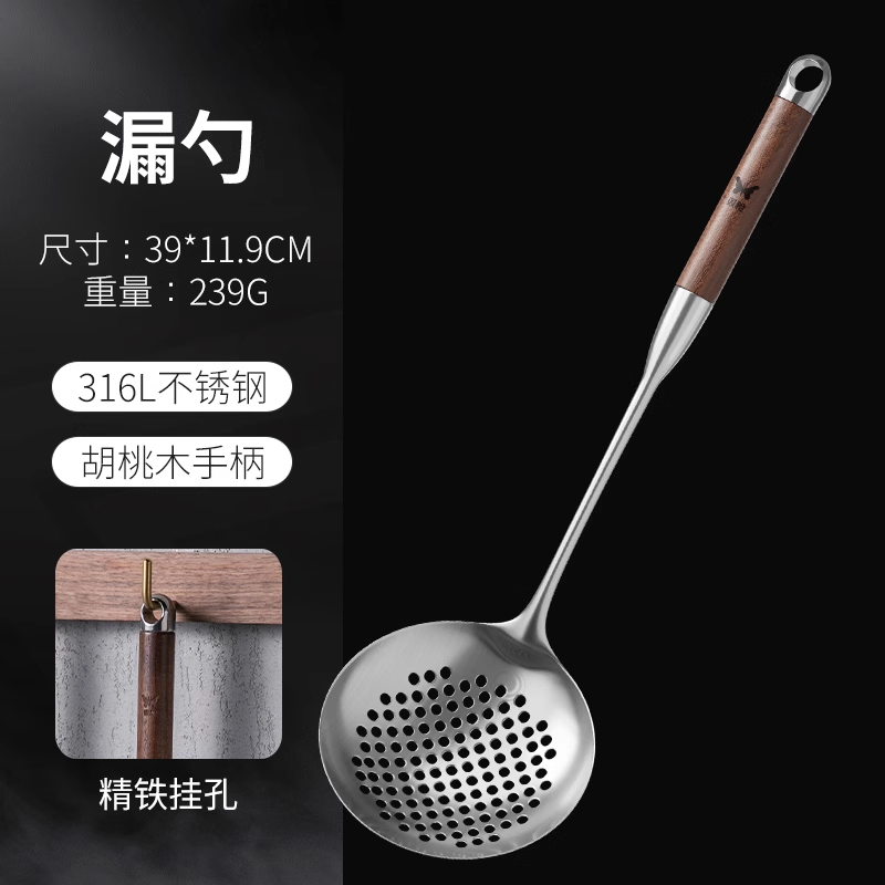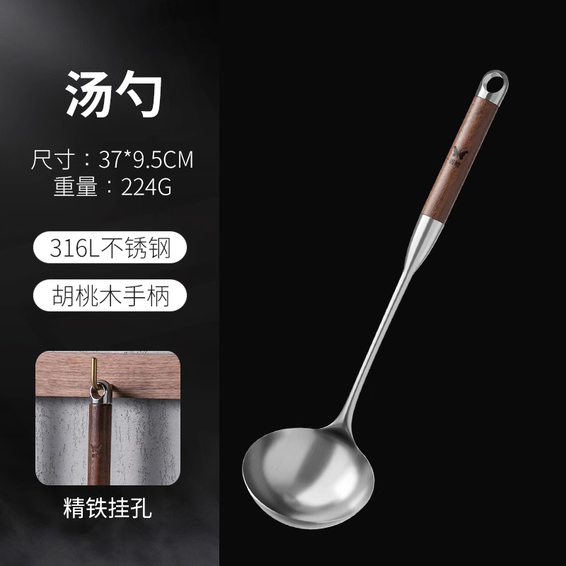 • 316L 스테인리스 스틸 국자 - 호두나무 손잡이