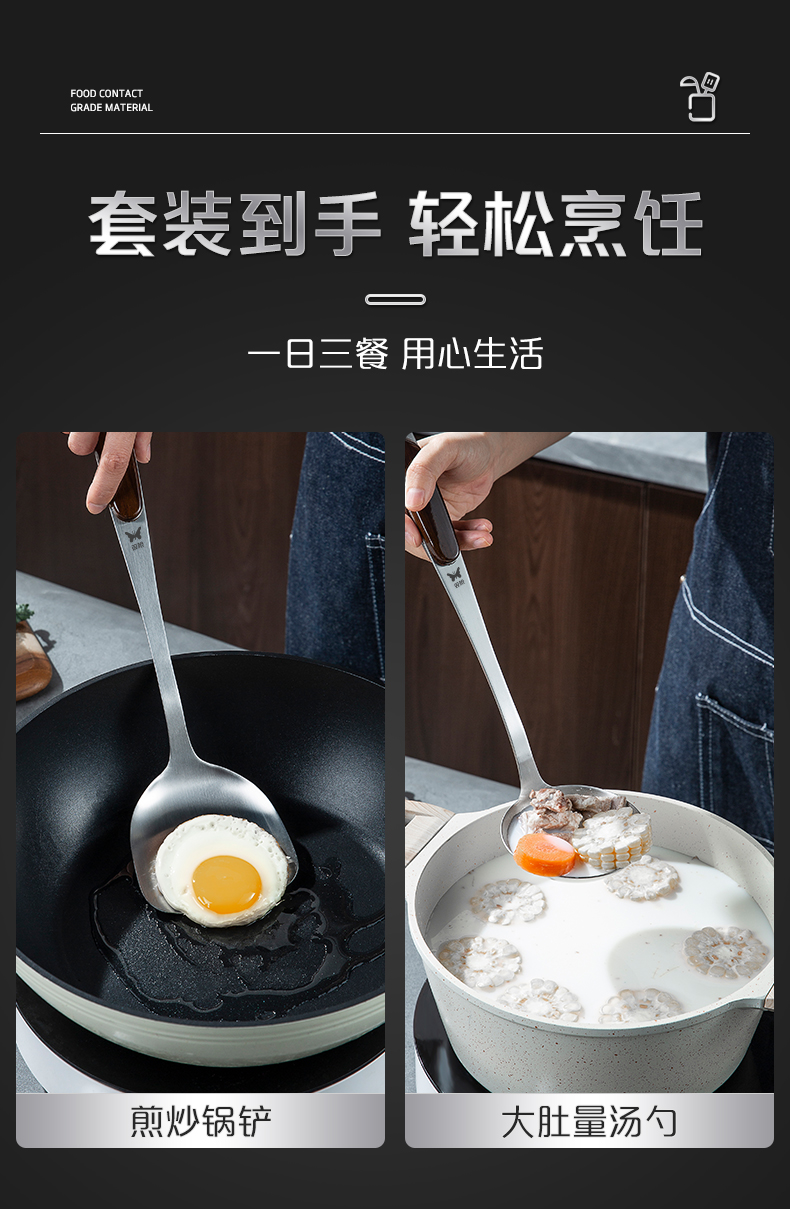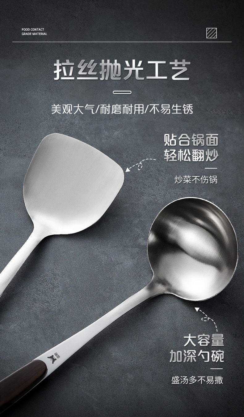 304 스테인레스 스틸 주걱, 요리 주걱, 가정용 두꺼운 스푼, 국자, 붙지 않는 팬 316 세트스토어 가기