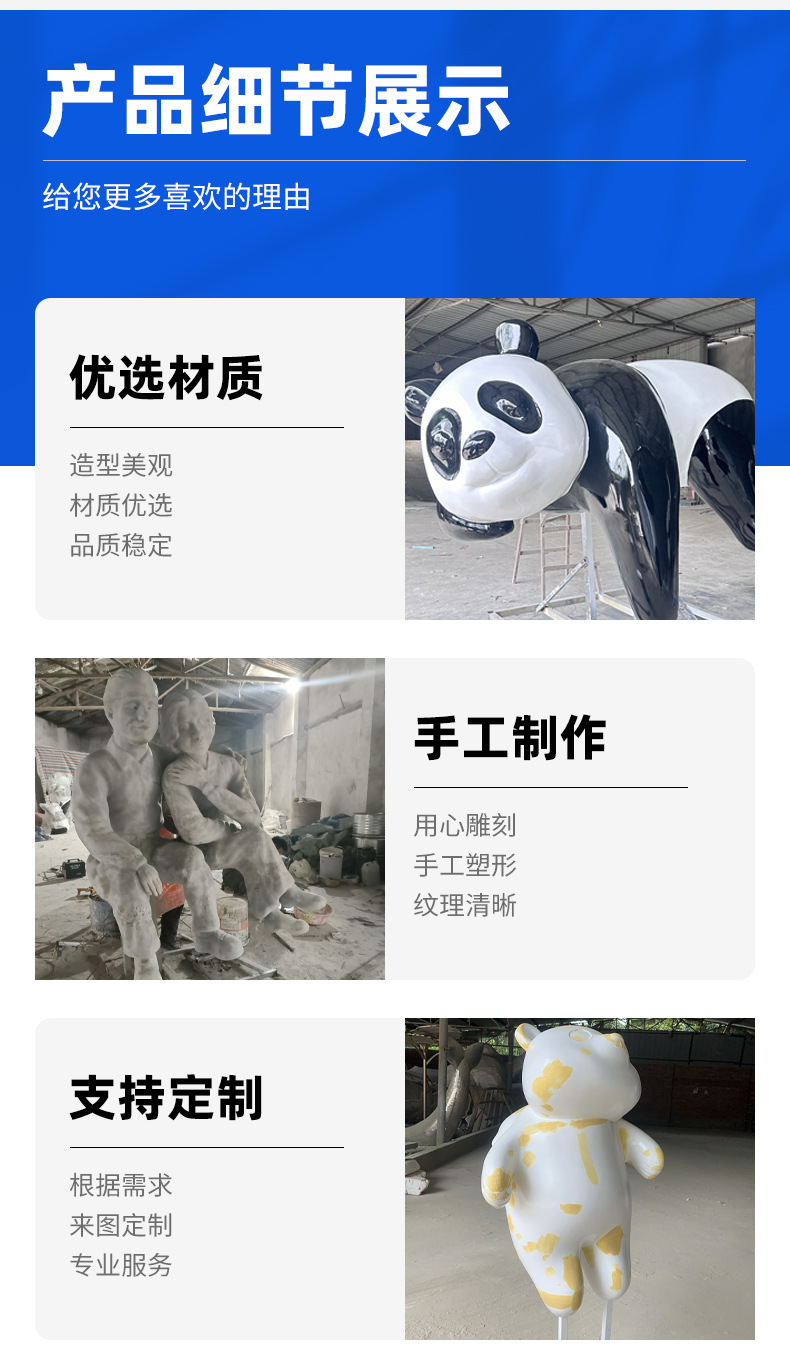 3D 인쇄 조각 팬더 조각 장식품 유리 섬유 만화 팬더 벽 등반 팬더 공예 동물 장식품