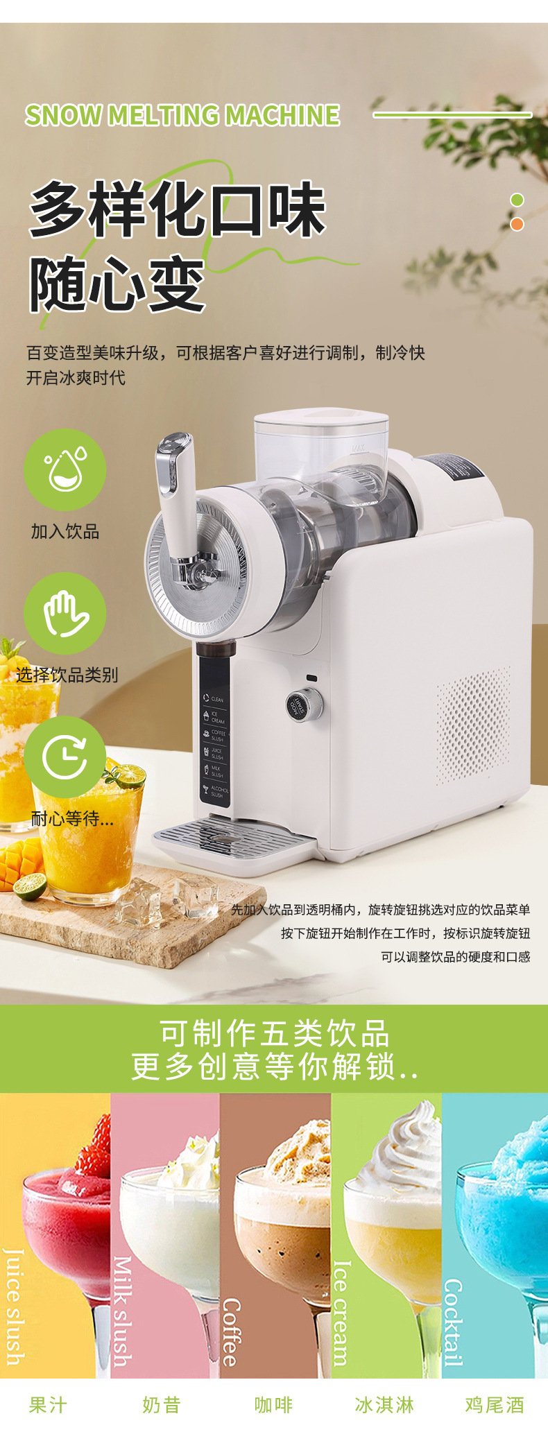 제빙기, 가정용 아이스크림 기계, 완전 자동 음료 스무디 기계, 눈 녹는 기계, 상업용 냉음료 가게 눈 과일 주스 기계
