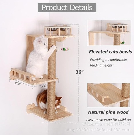 나무 고양이 클라이밍 프레임, 고양이 둥지, 창틀 해먹, 고양이 프레임, 창문 발코니, 애완 고양이가 햇빛을 즐길 수 있는 고양이 둥지