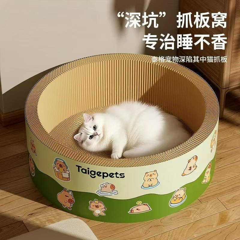 둥근 모양의 깊은 고양이 스크래치 보드 장난감, 내마모성 및 부스러기 없는 일체형 고양이 스크래치 그릇, 고양이 발톱 보드, 긁힘 방지, 초대형 고양이 둥지스토어 가기
