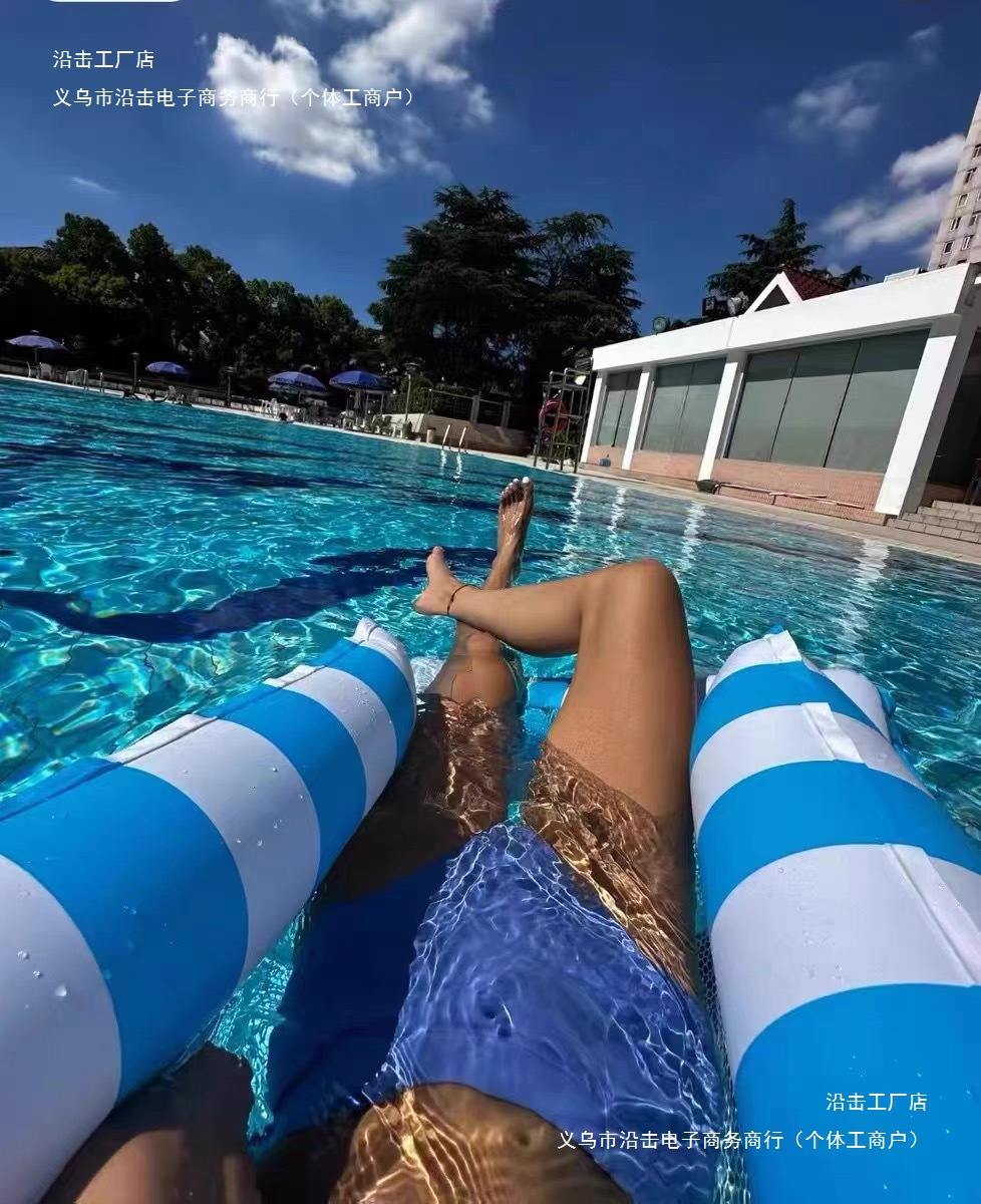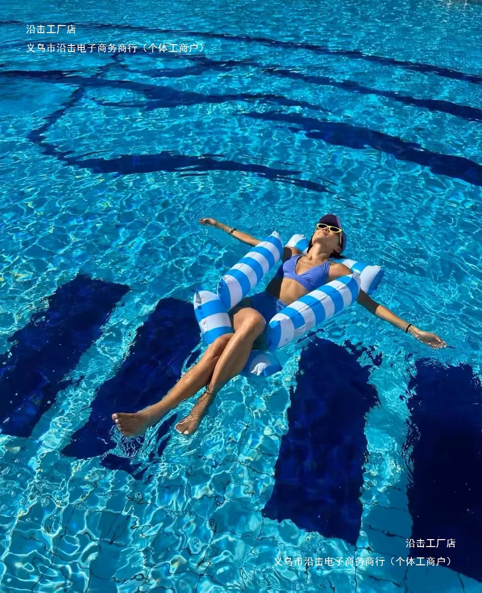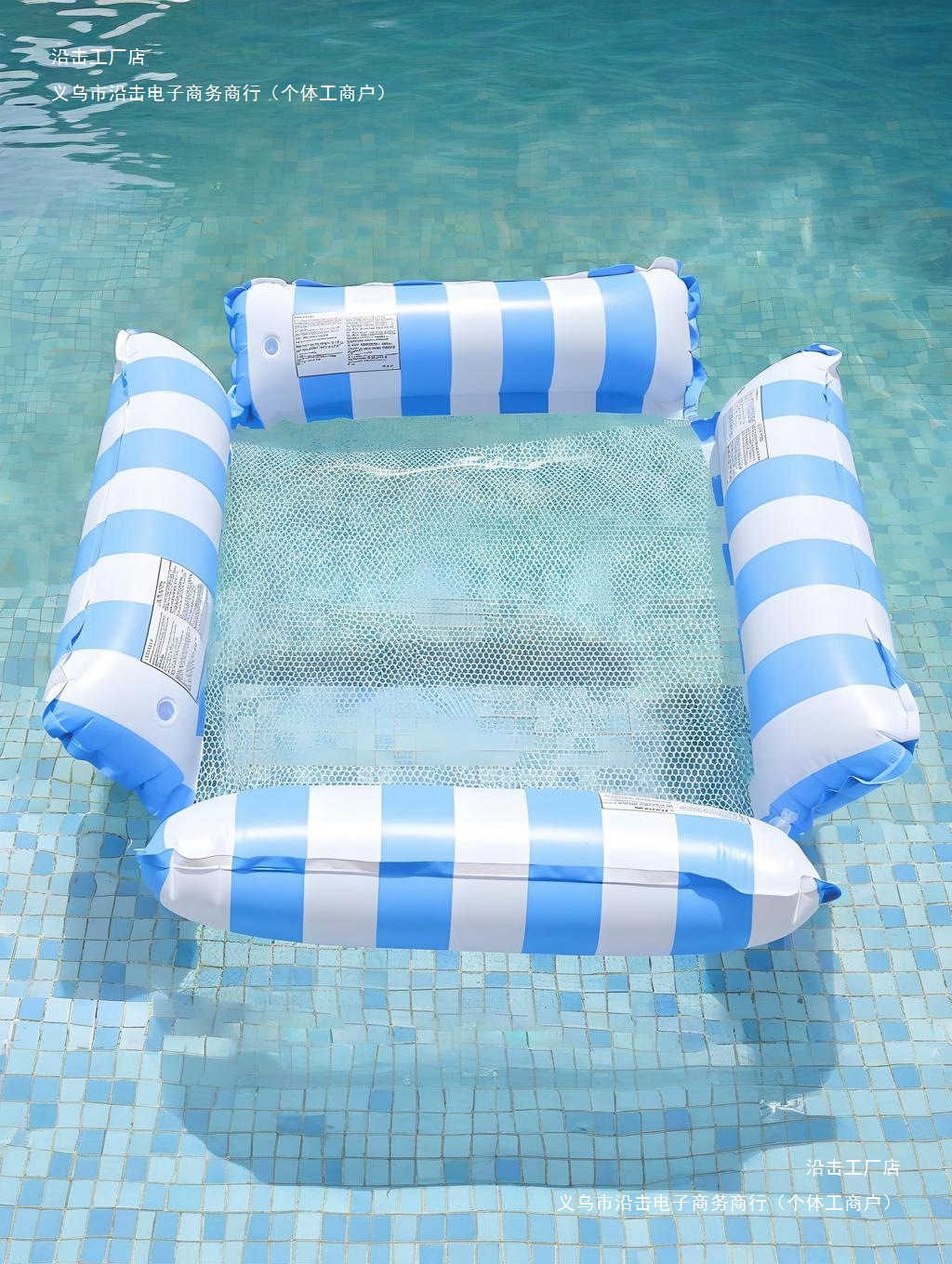 • 사각 스트라이프 메쉬 플로팅 침대 블루 + 풋 펌프