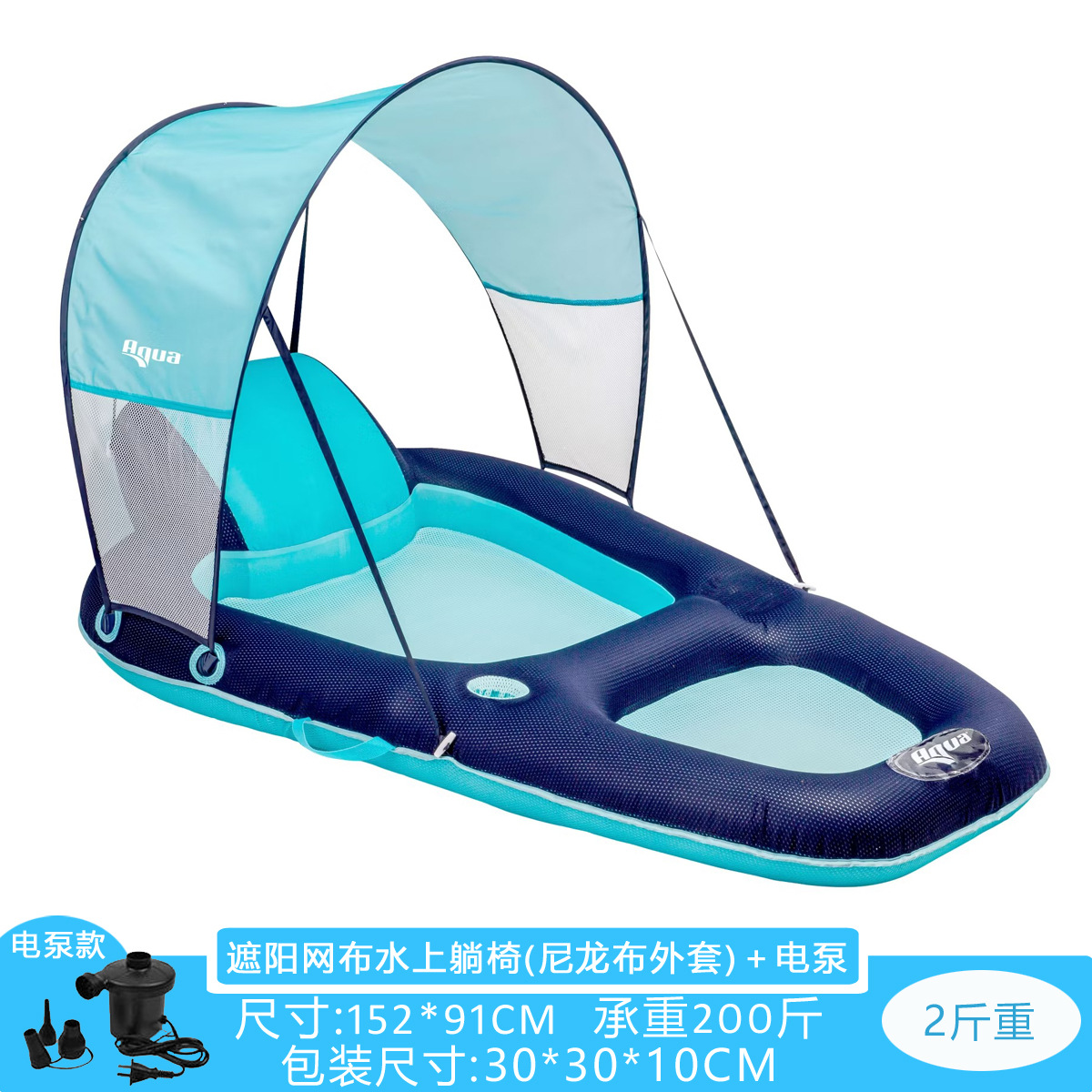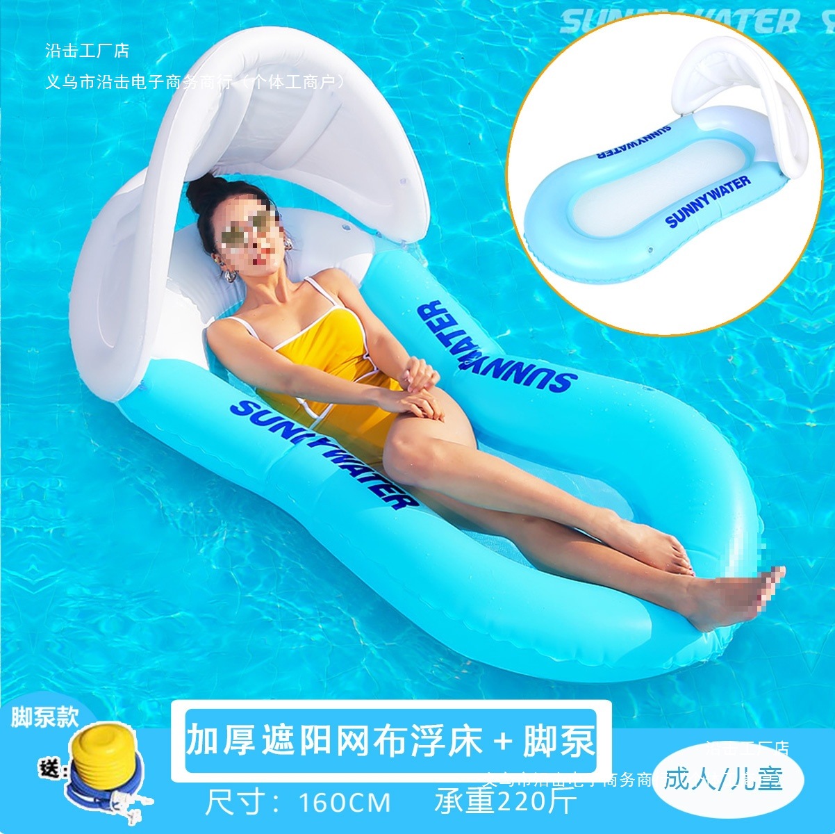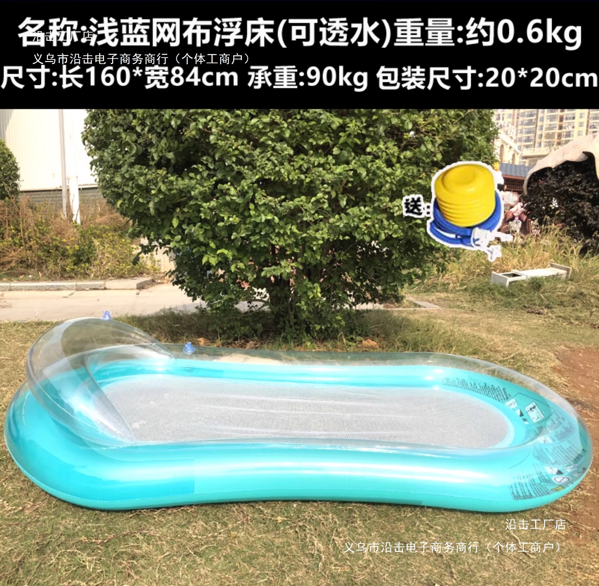 • 한국어 두꺼운 하늘색 차양 메쉬 플로팅 침대 + 발 펌프